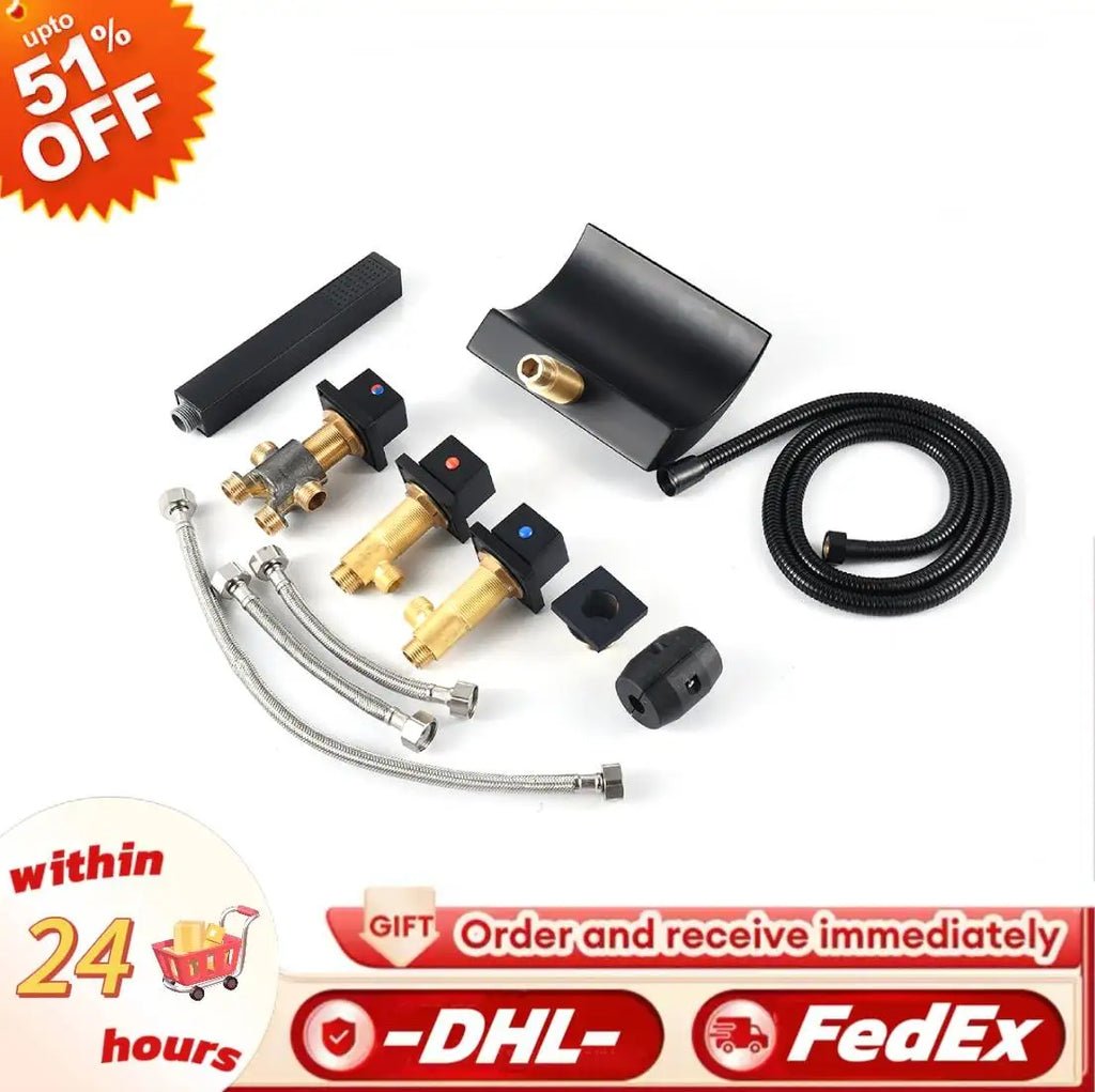 4Pcs Brass Bathroom Dual Handle Bathtub Faucet Bath Faucet Deck Mounted Handheld Tub Mixer Cold Hot Water Tap With Hand Shower