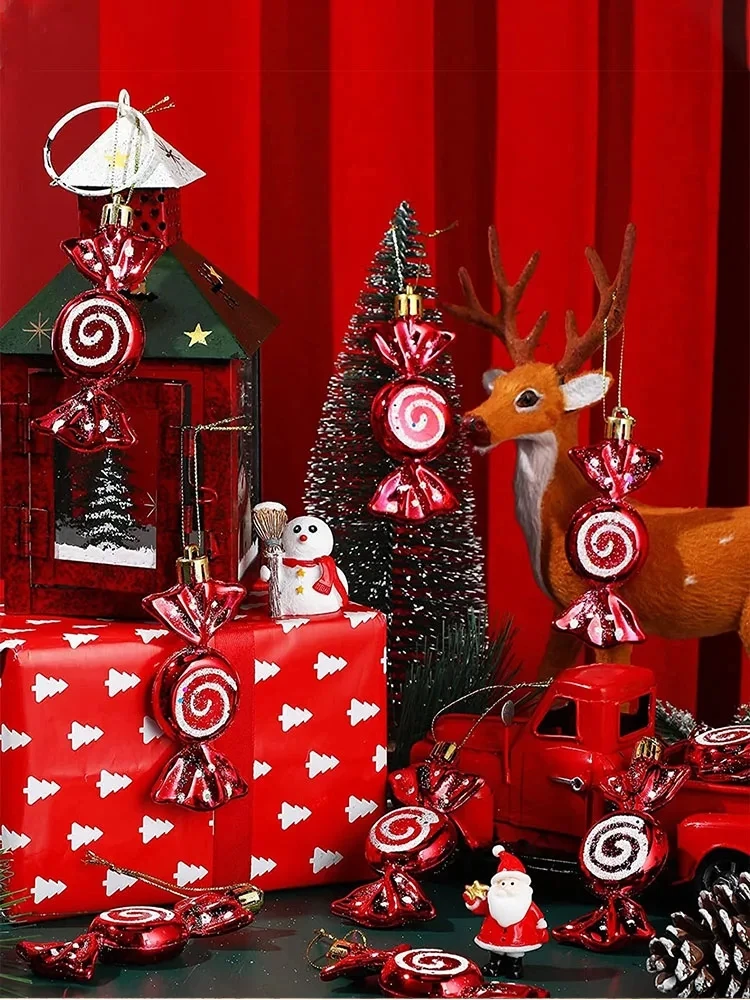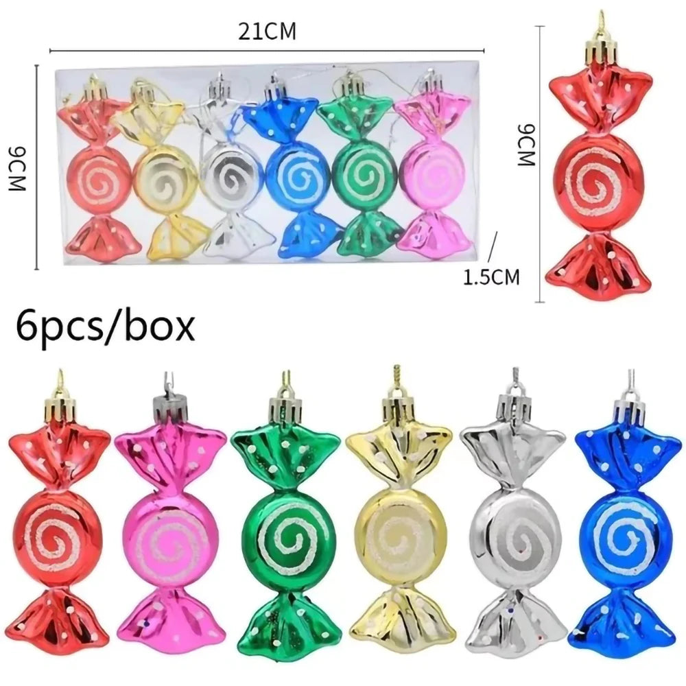 6pcs Christmas Lollipop Candy Cane Pendant Xmas Tree Hanging Ball Ornaments Christmas Decorations for Home 2025 New Year Gift