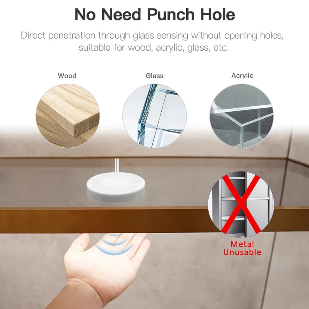 3.Touch distance: The different thickness sensitive is different, the thinner the better Please don't close to metal materials to avoid interference