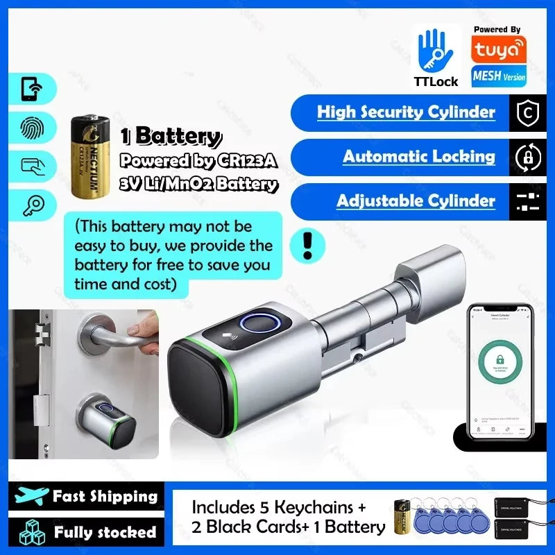 Tuya/ TTLock App Control Bluetooth Fingerprint Door Lock Cylinder Biometric Electronic Smart Lock Digital Keyless Replace