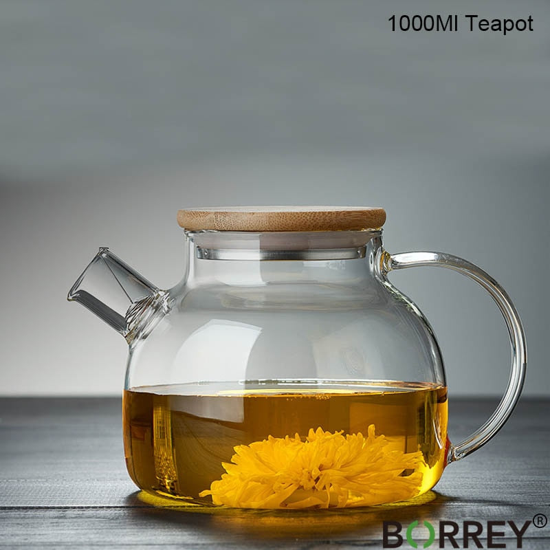 Tetera de cristal grande BORREY, tetera resistente al calor, tetera de flores para té, recipiente grande de cristal transparente para zumo de frutas, Base de soporte de tetera de cerámica