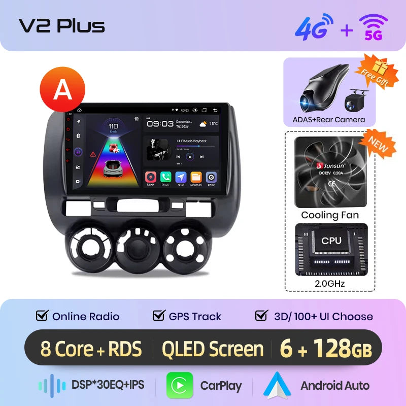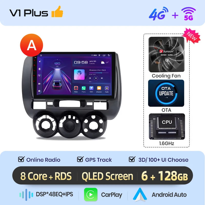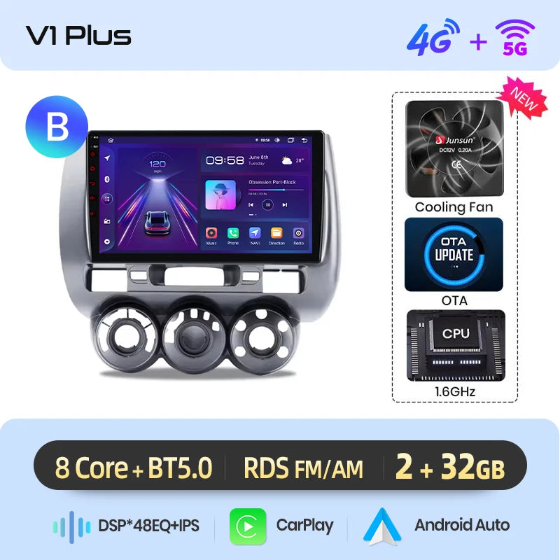 Junsun Wireless CarPlay Android Auto Car Radio for Honda Fit Jazz City 2002 2003 2004-2007 RDS GPS 4G WIFI Multimedia autoradio