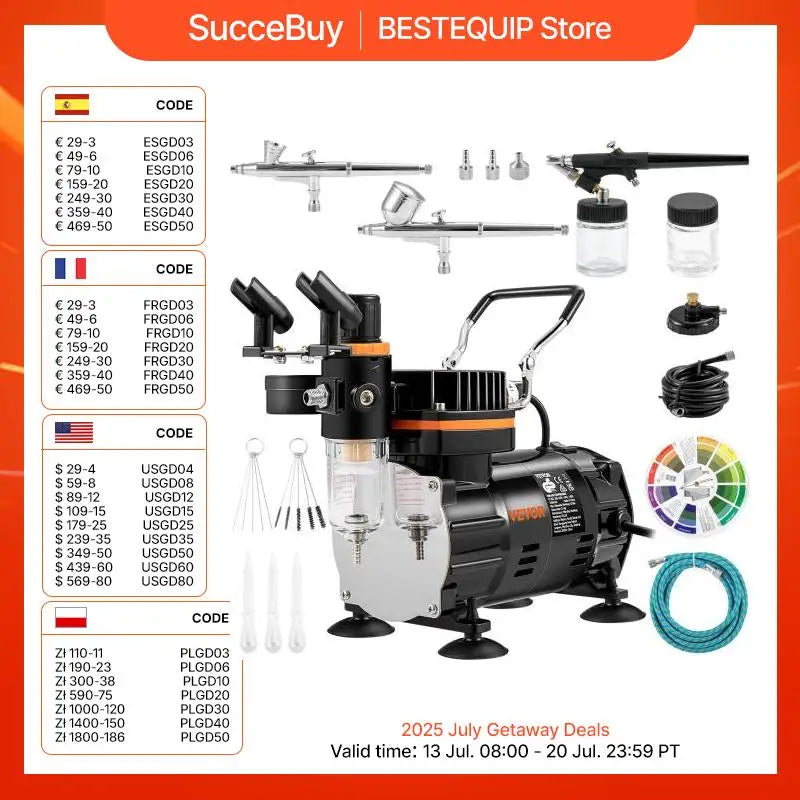 Discover the versatility of our advanced airbrush kit, designed to handle a wide range of creative projects. Featuring a high-performance piston-type airbrush compressor, this kit includes gravity feeds and dual-action airbrushes for precise control. With three interchangeable spray nozzles, you can achieve various spray patterns for applications like DIY crafts, automotive graphics, temporary tattoos, cake decorating, fine art, and nail art. Whether you're a hobbyist or a professional, this kit provides everything you need to bring your artistic visions to life.