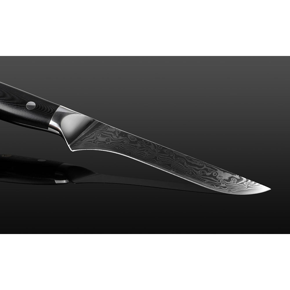 This professional boning knife is made of 67 layers of Damascus steel. Good hardness and good quality. The knife is sharper.