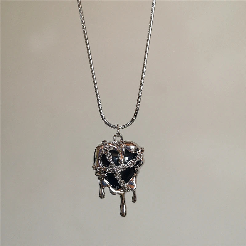 Goth Irregular Heart Cross Vortex Pendant Snake Rope Chain Necklace For Women Men Grunge Y2K 90s Punk Halloween EMO Accessories