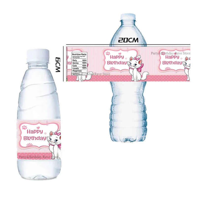 Pink Marie Cat Bottle Sticker Labels Girl Happy Birthday Party Supplies Baby Shower Disney The AristoCats Decoration Stickers