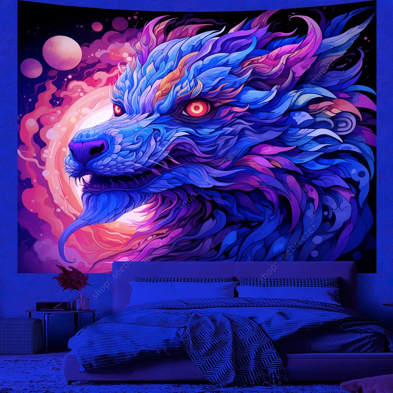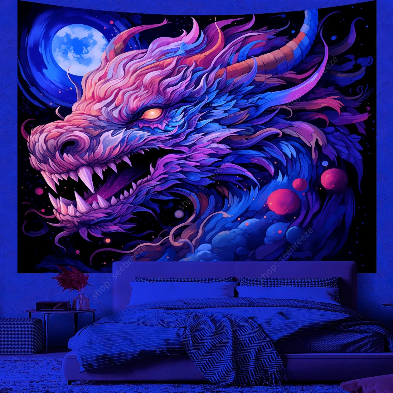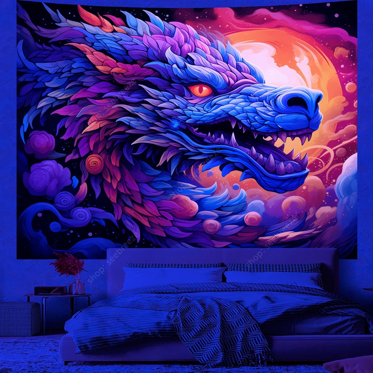 Psychedelic Animal Tapestry Dragon UV Reactive Tapestry Wall Hanging for Hippie Kawaii Room Decor Sofa Blanket Gift for Friend
