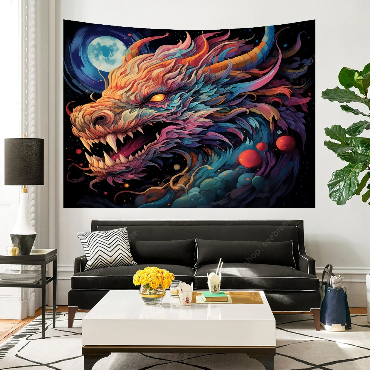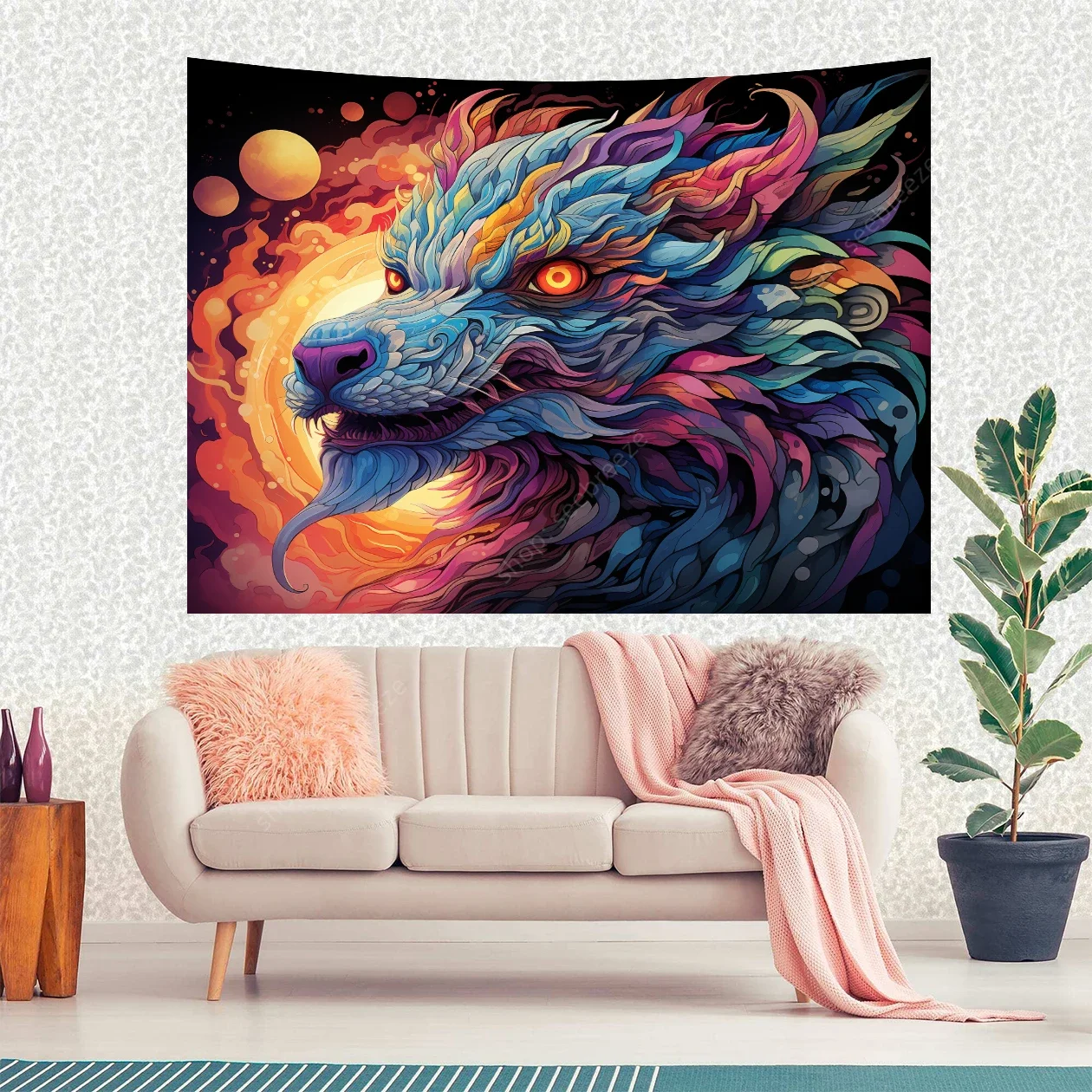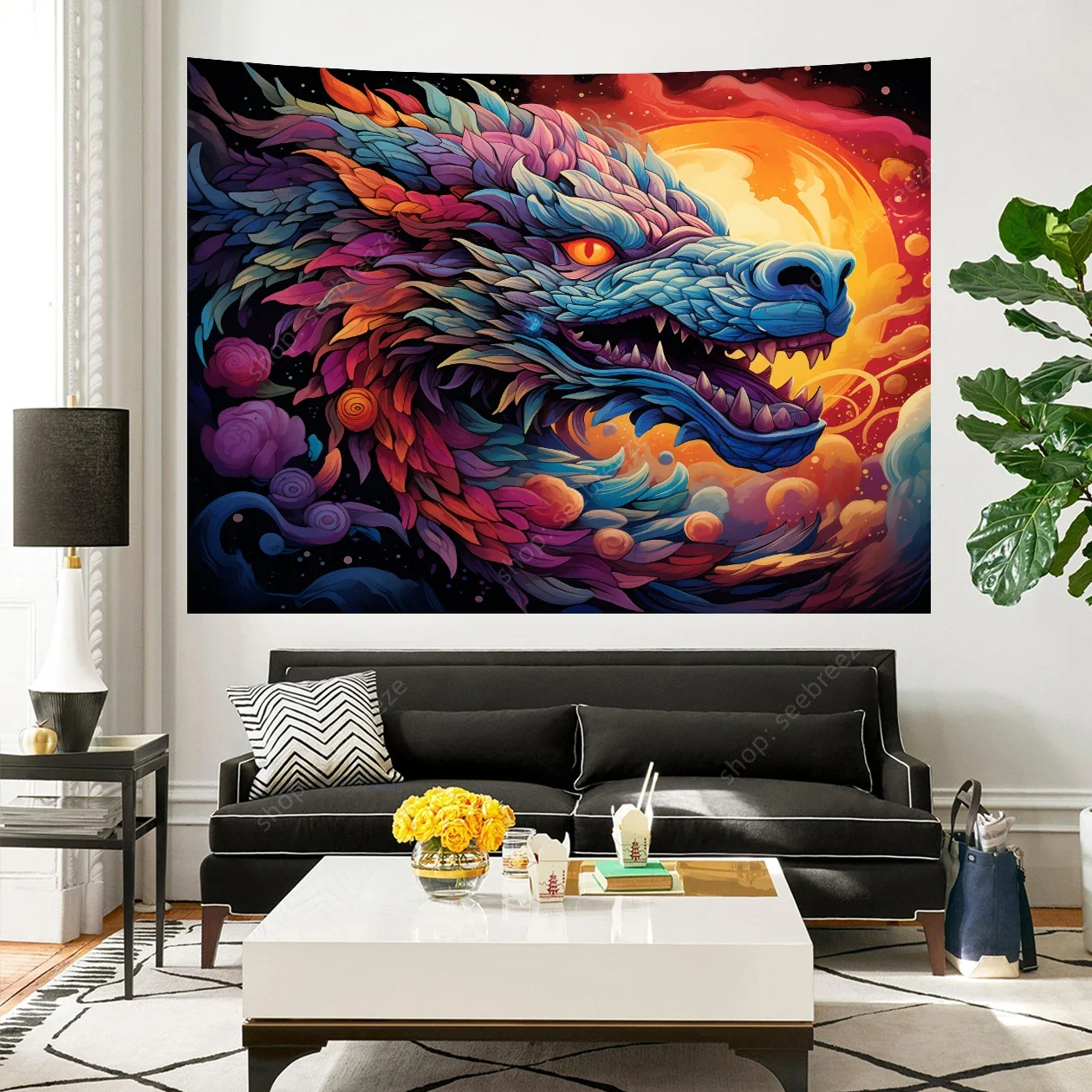 Psychedelic Animal Tapestry Dragon UV Reactive Tapestry Wall Hanging for Hippie Kawaii Room Decor Sofa Blanket Gift for Friend