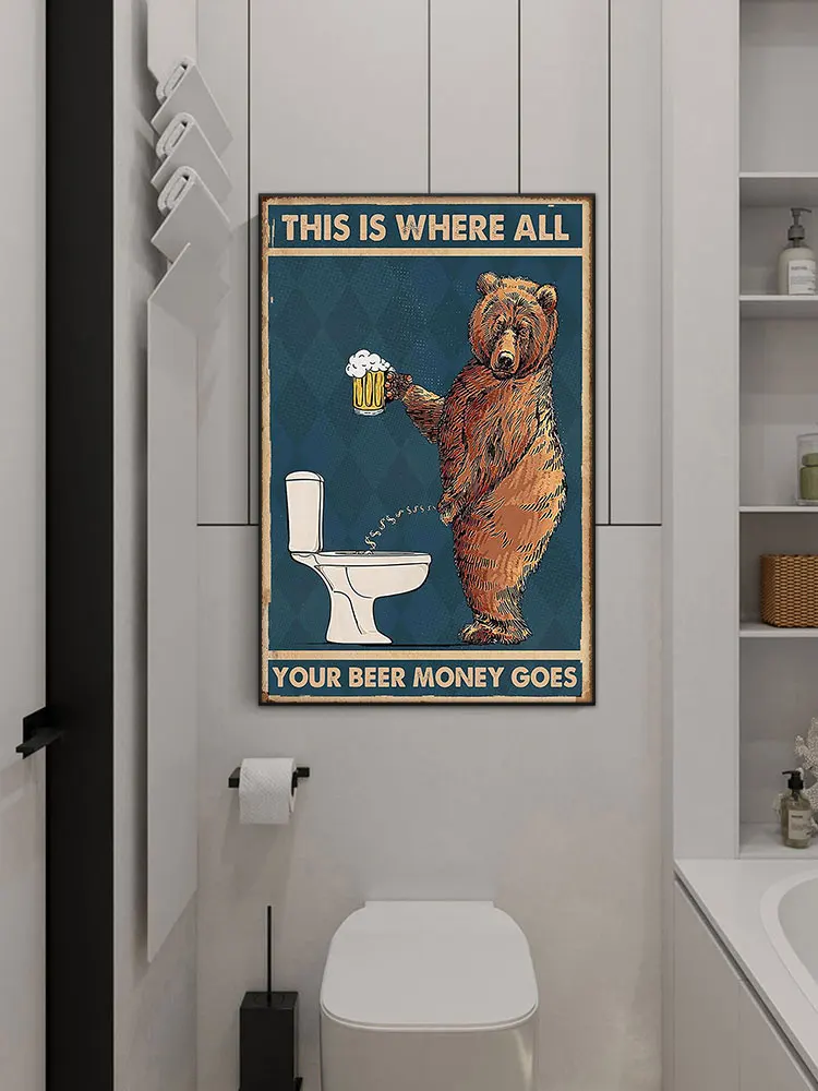 Retro Funny Wall Art Poster Prints Bear Drinking Beer in The Toilet Canvas Painting Picture For Room Home Decoration