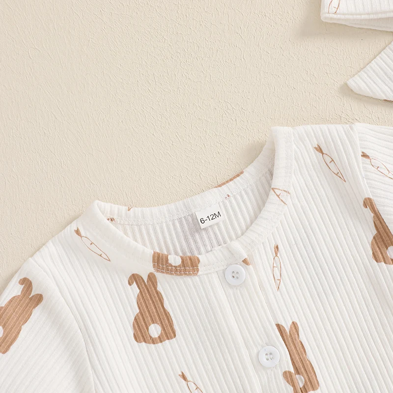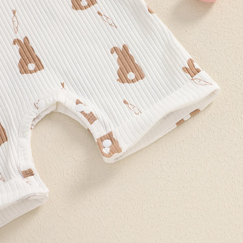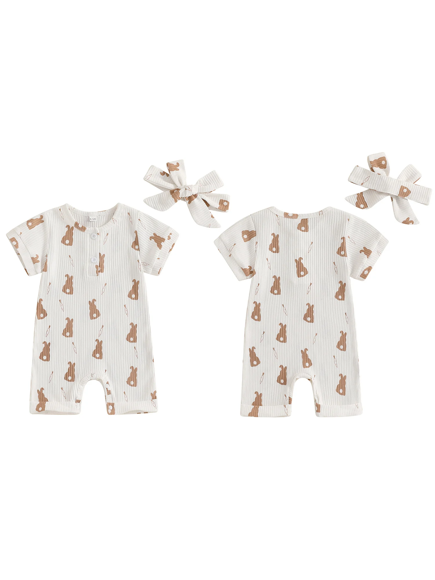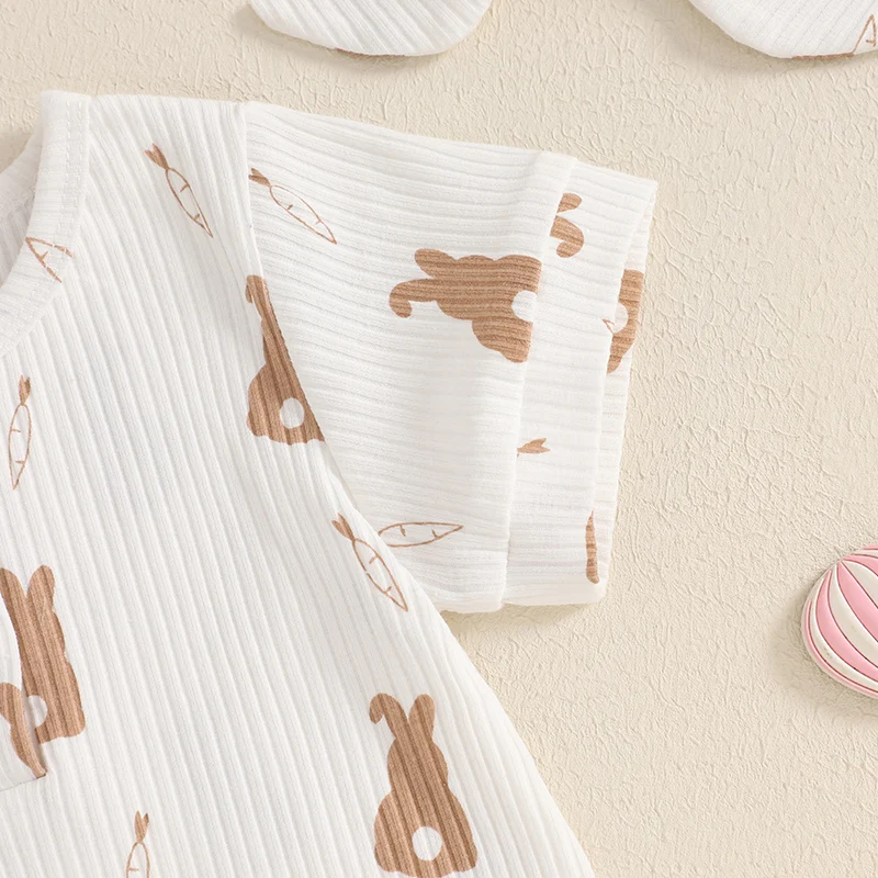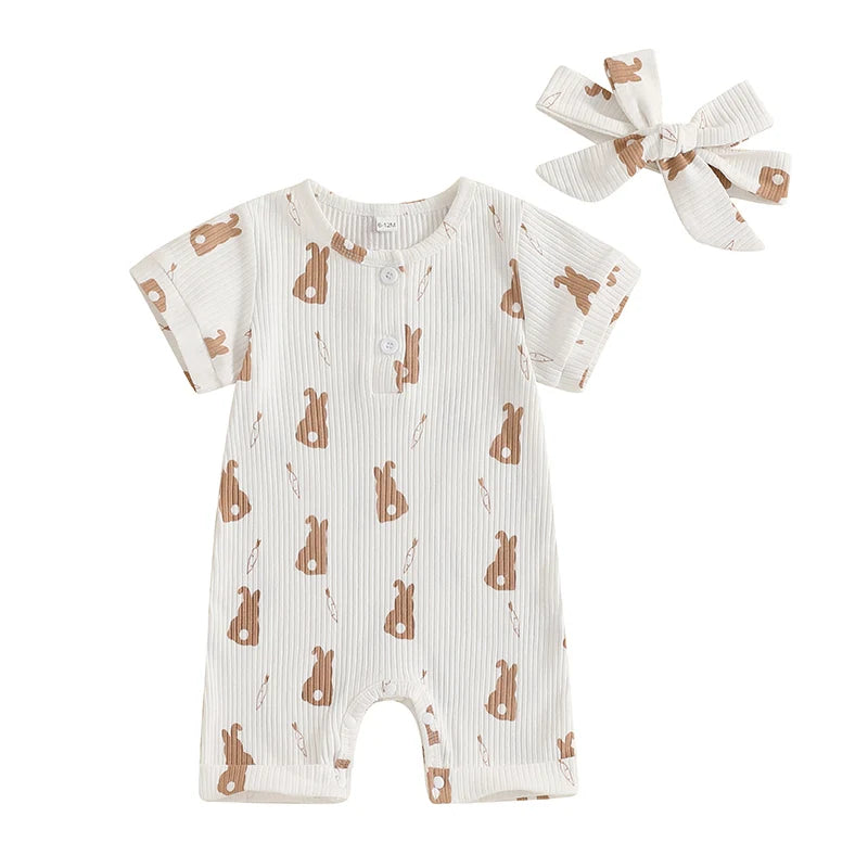 Baby Girl Easter Casual Jumpsuit Short Sleeve Bunny Carrot Print Romper with Headband