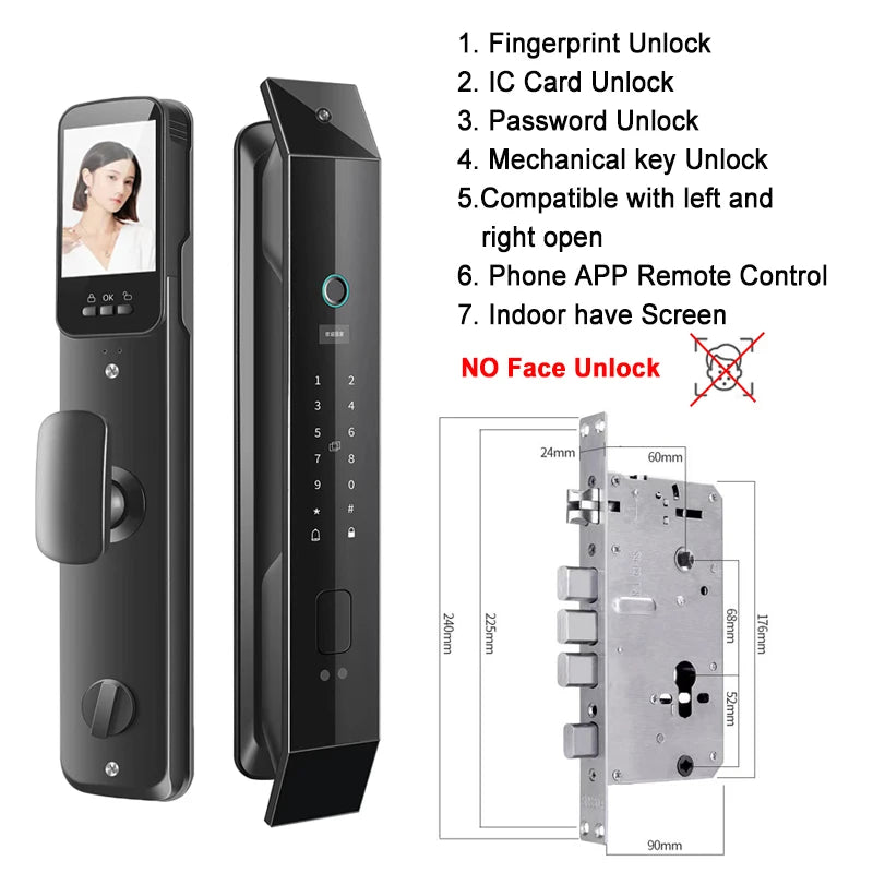Ways To Unlock: Face Recognition,App,Mechanical Keys,Card,WiFi,Password,FINGERPRINT