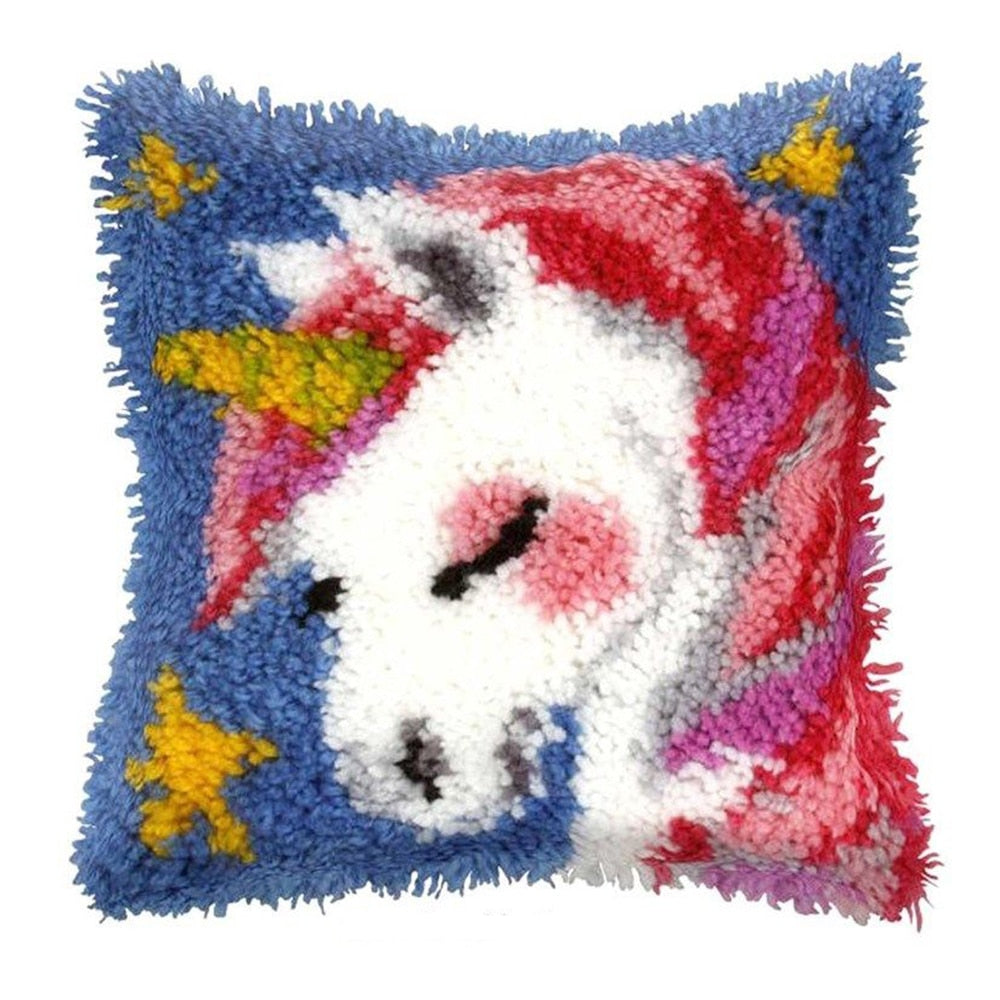 Latch hook pillow kit with Pre-Printed Pattern Cross stitch kits Knot set pillow Unfinished accessories Unicorn Cushions kit