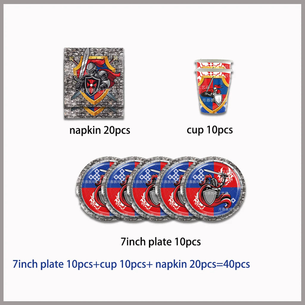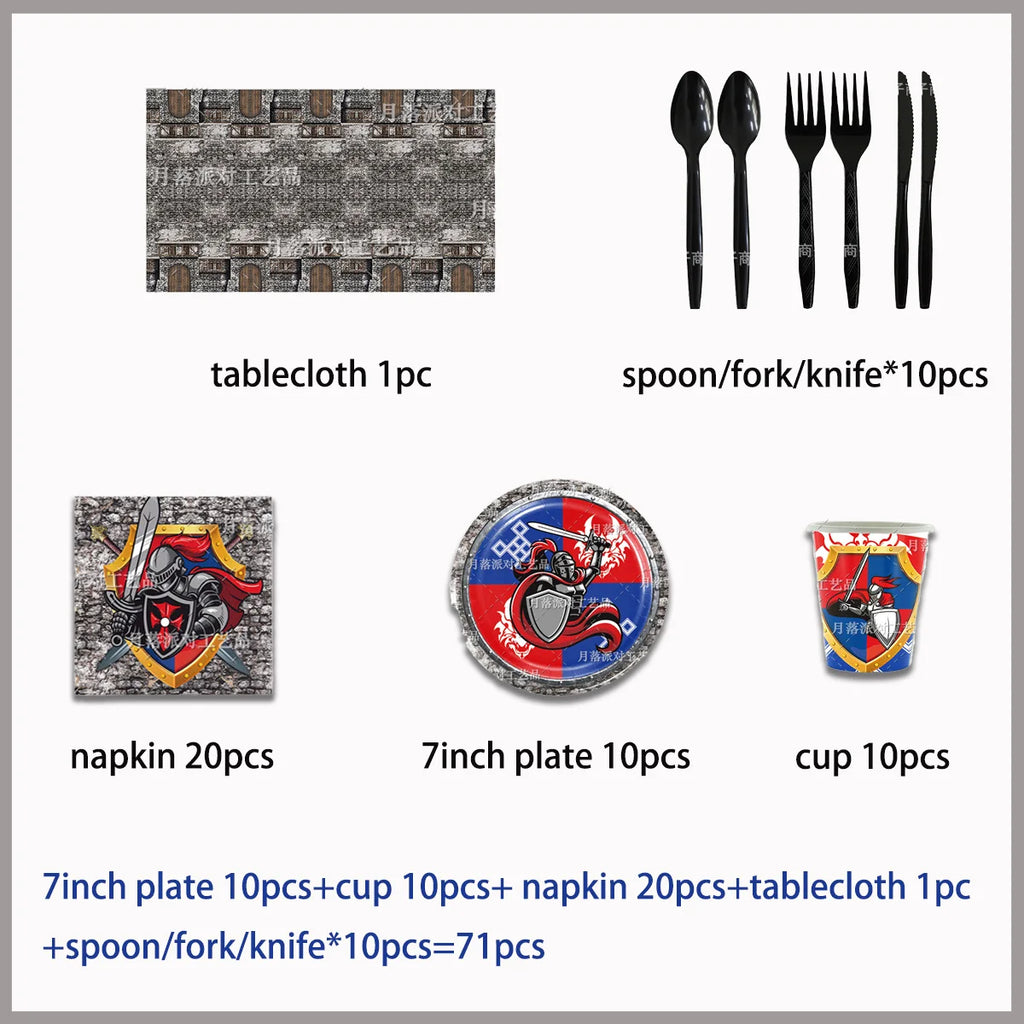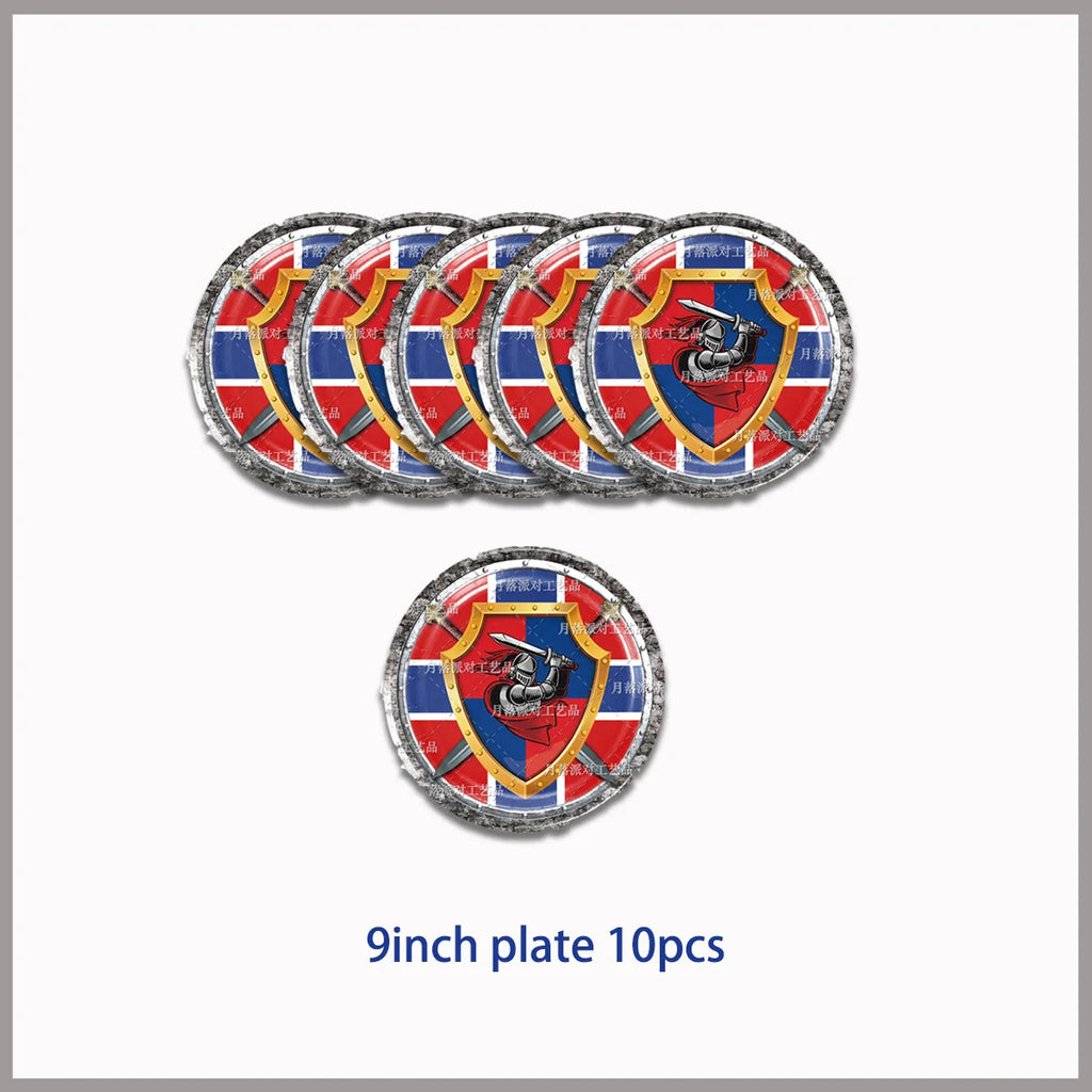 Middle Ages Armored Knight Theme Children's Birthday Party Decoration Supplies Disposable Backdrop Plate Banner Baby Shower Gift