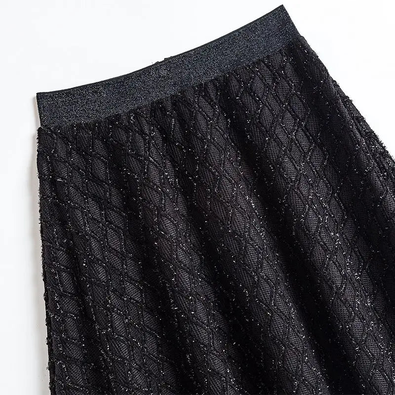 Minimalist Autumn and Winter Bright Silk Plaid Women'sFashion Elegant Mid Length Elastic High Waisted Large Hem A-line Skirt