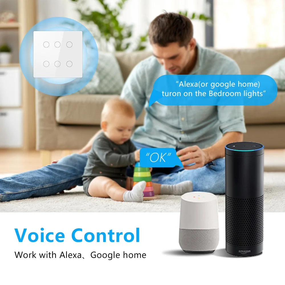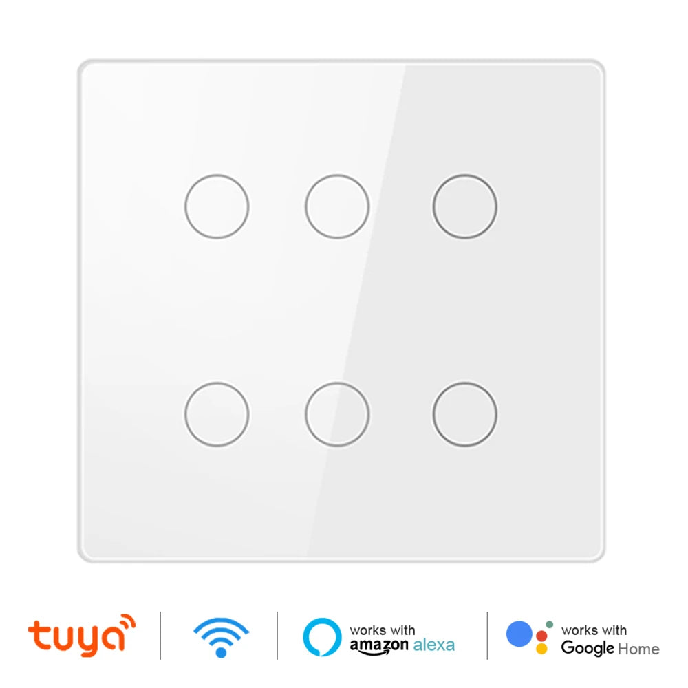 Tuya Smart WiFi Light Switch 4x4 Brazil Light Wall Switches Touch Panel 4/6 Gang Wireless Control for Alexa Google Home 100-250V