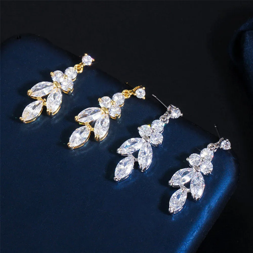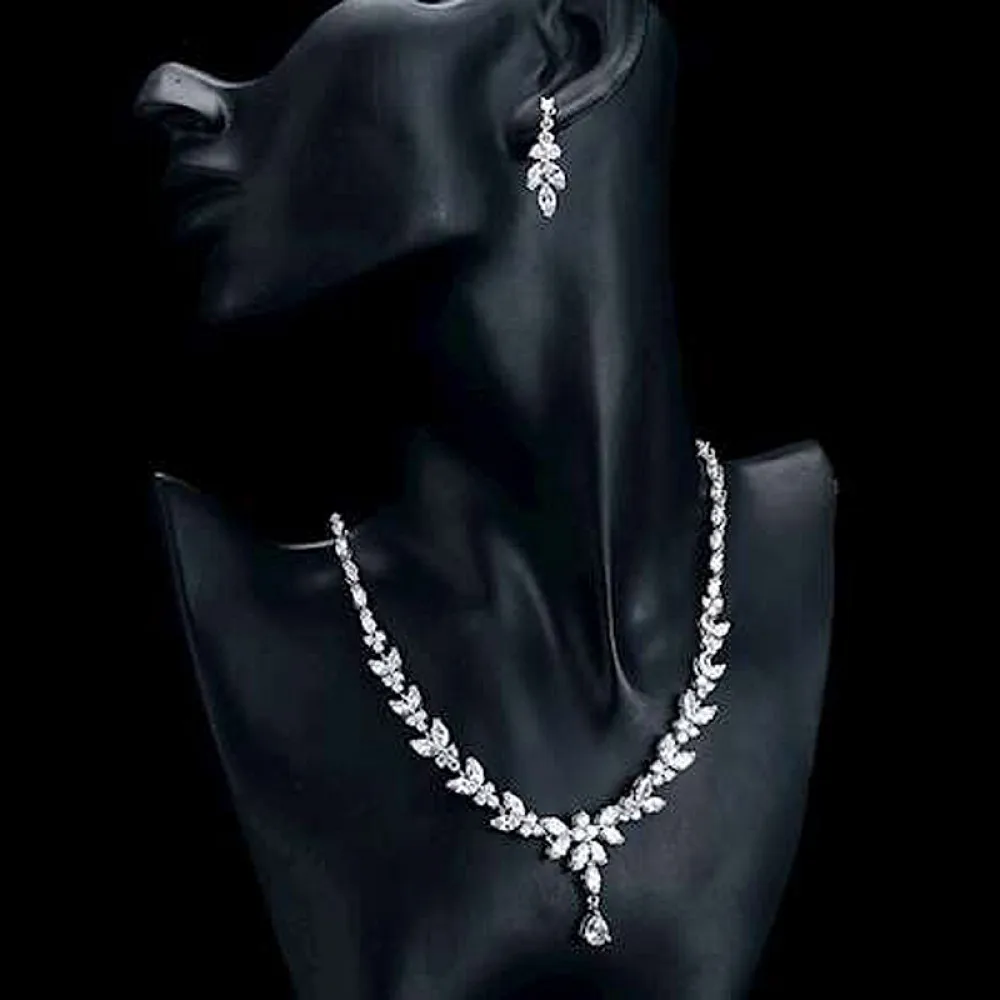 Uilz Exquisite Leaf Dangle Earring Jewelry Set for Women Wedding Accessories Zircon Drop Earrings Necklace Sets Bride Gift