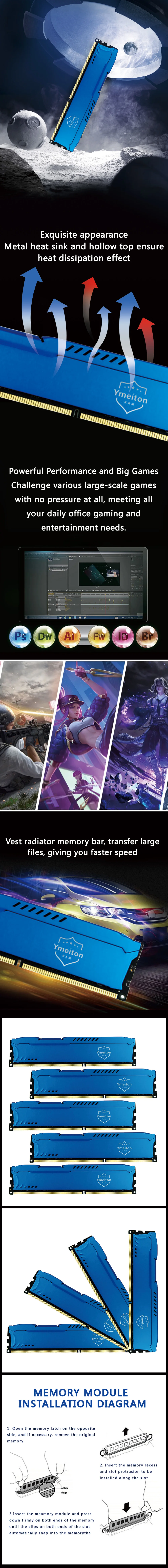 memoriam ddr3 2PCS pc Ymeiton ram memory ddr3 1600mhz 8gb 4gb 1333mhz U-DIMM RAM 240Pin 1.5v PC Desktop Memory Wholesales