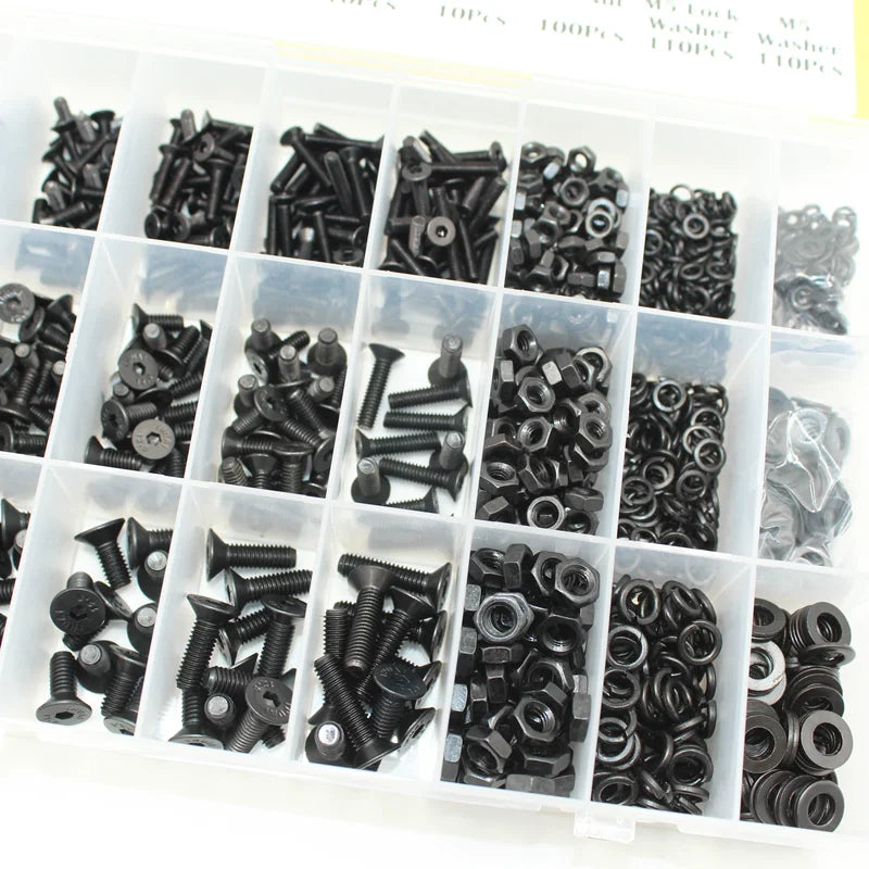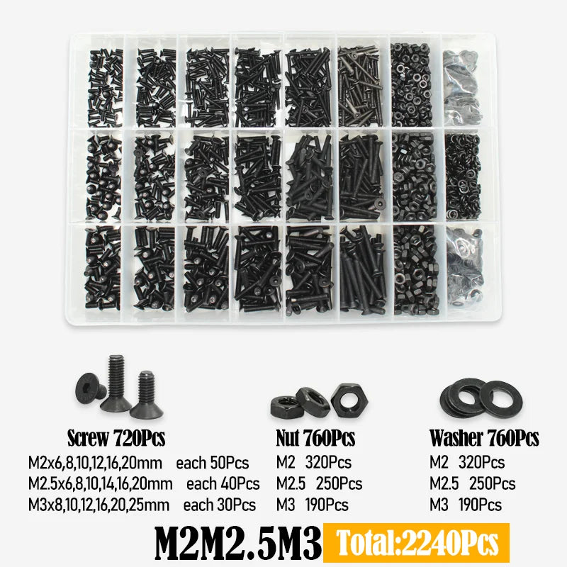 3045/2545/2520/2240/1420/1280Pcs Countersunk Flat Head Hex Socket Cap Screws Kit M2 M2.5 M3 M4 M5 M6 M8 Carbon Steel Allen Bolt and Nut and Washer Assortment Kit