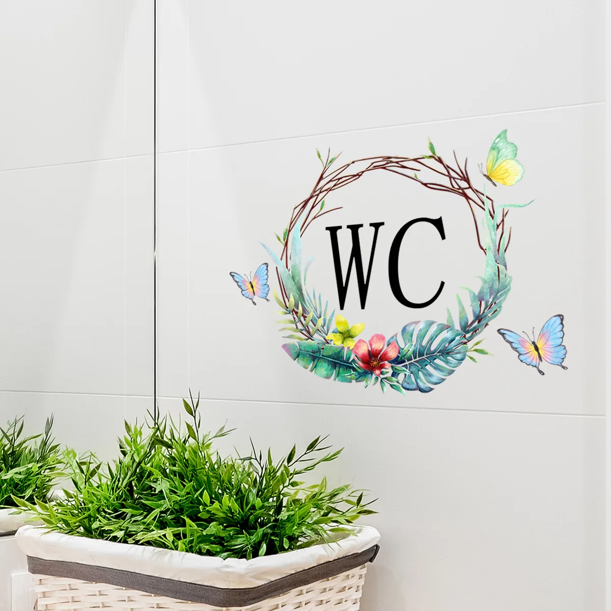 Flowers Butterfly WC Wall Sticker for Bathroom Decoration Vinyl Home Decals Waterproof Poster Door Stickers Toilet Sign