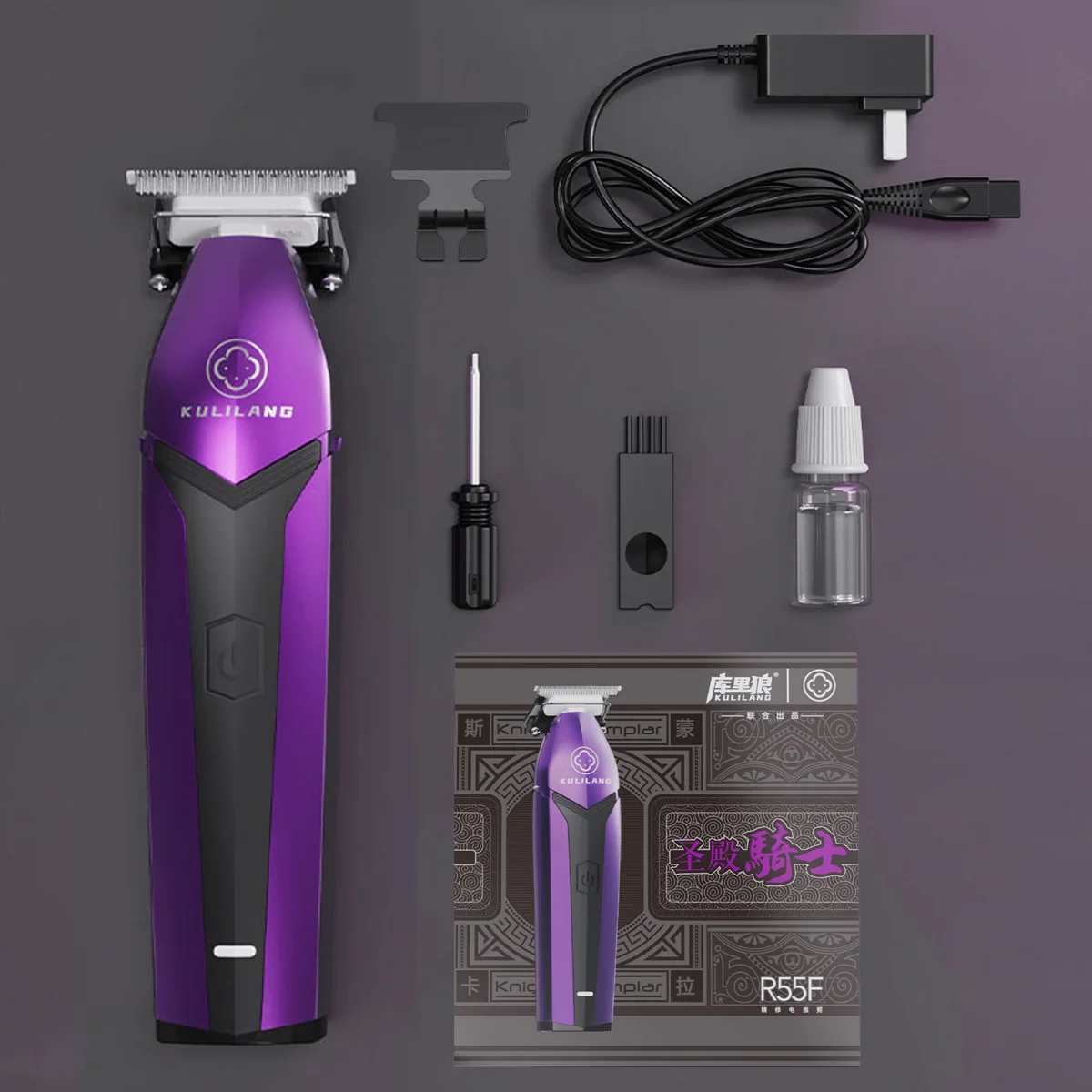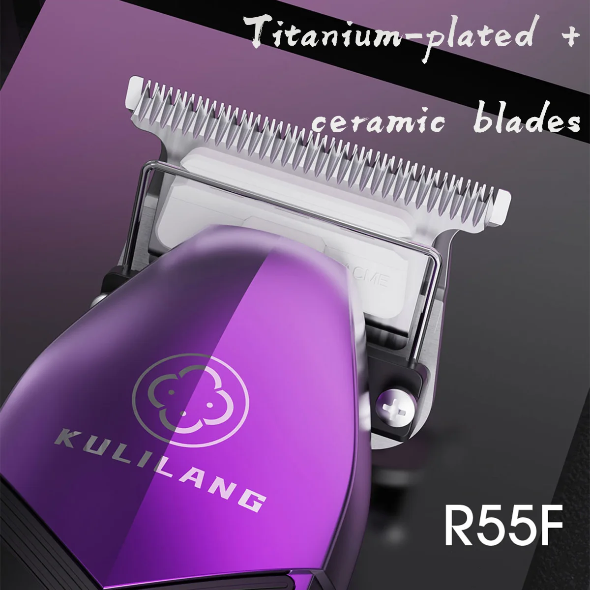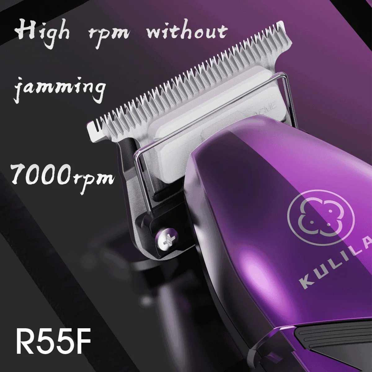 R55F Purple Professional Electric Hair Trimmer 7200RPM Adjustable 0 Pitch Blade Barber Shop Hair Clipper KULILANG Madeshow