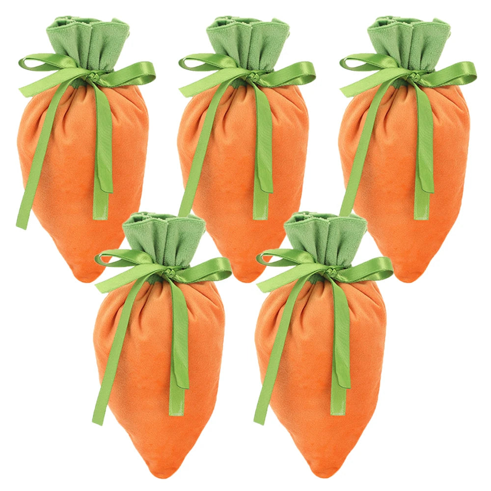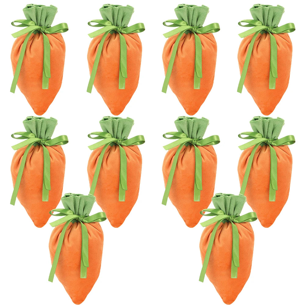 1Pc/10Pcs Easter Carrot Gift Bags Velvet Carrot Drawstring Bags Easter Candy Cookie Packaging for Kids Easter Decoration 2024