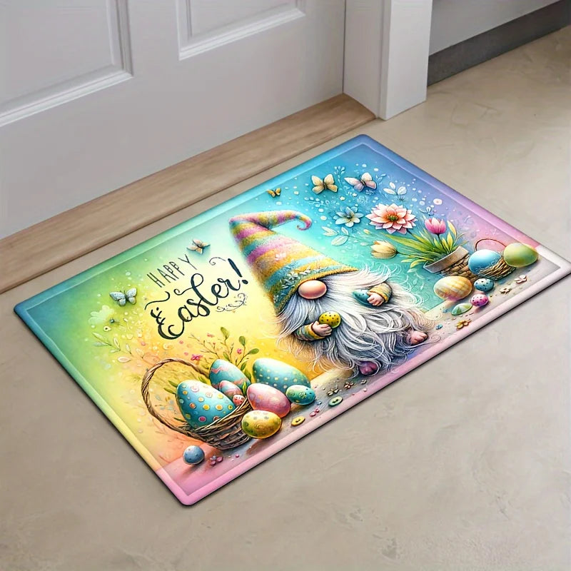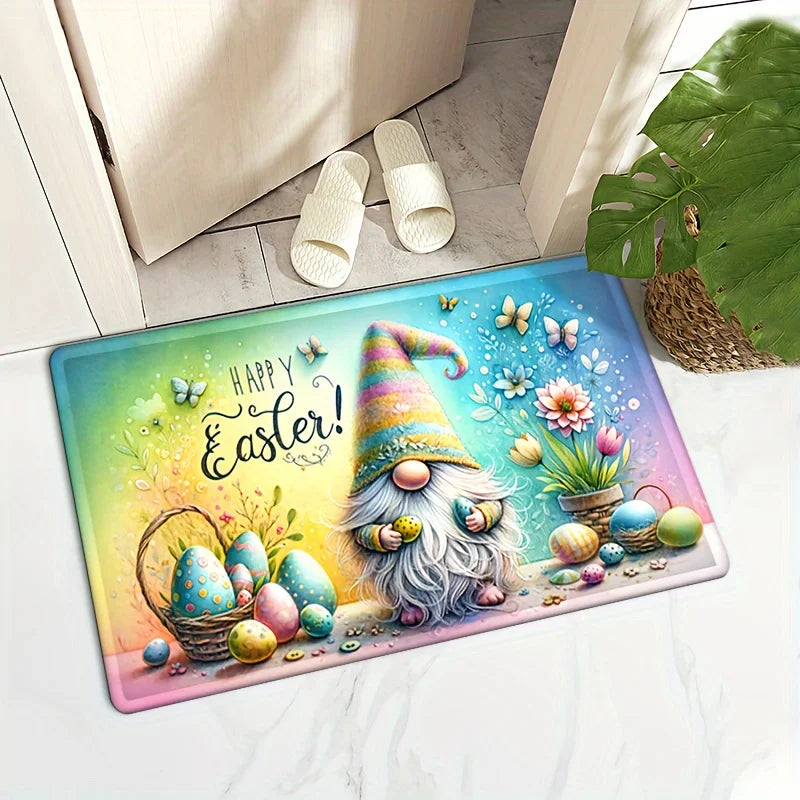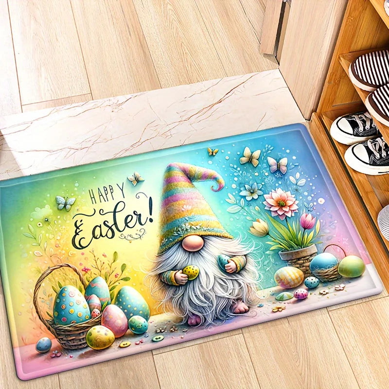 1Pc Lovely Gnome Print Door Mat Easter Motif Entrance Pad Washable Bath Rug Area Carpet For Kitchen Balcony Terrace Home Decor