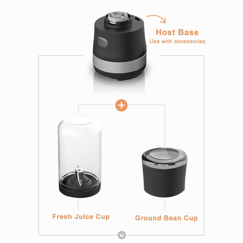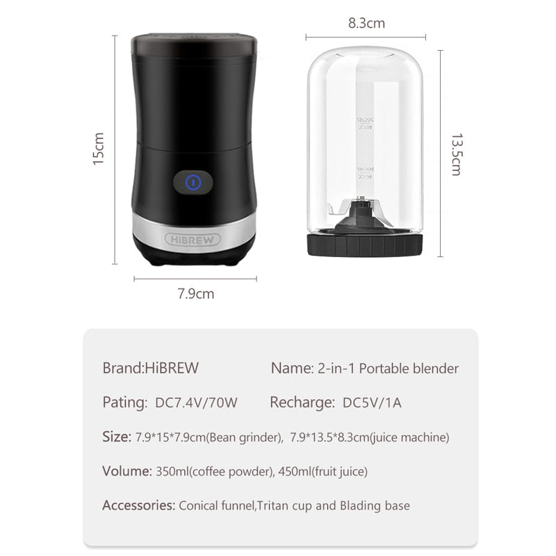 HiBREW 3-in-1 portable Ice Crusher Coffee Bean grinder and Juice blender Lithium Battery USB Rechargeable DC 5V Food Grade Cup