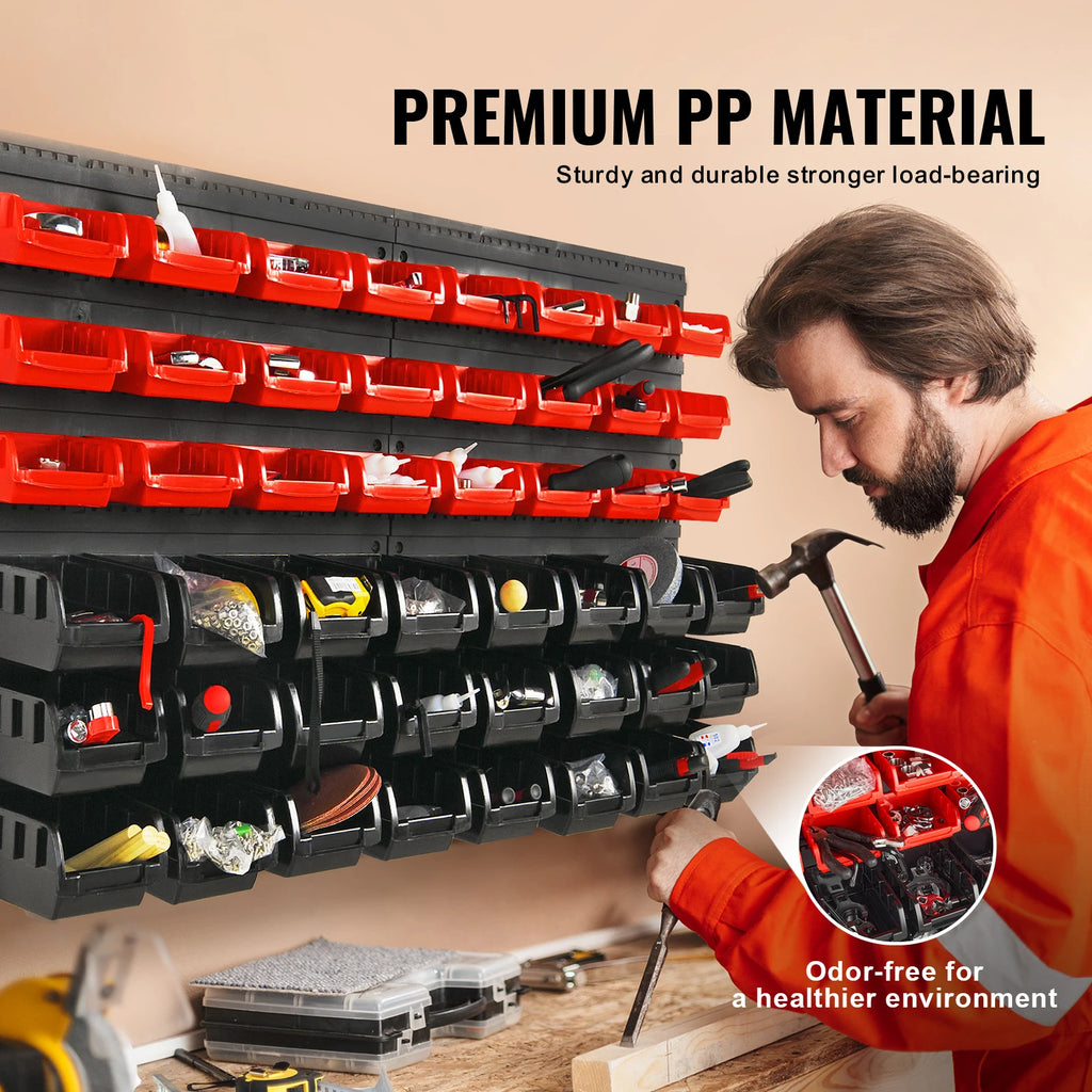 Product Weight: 3.9 kg (8.60 lbs) Material: PP Plastic Expandable Configuration: Wall-Mount Bins Quantity: 48 Product Size: 950 x 542 x 172 mm (37.40 x 21.34 x 6.77 in) Color: Black/Red Item Model Number: 12119B