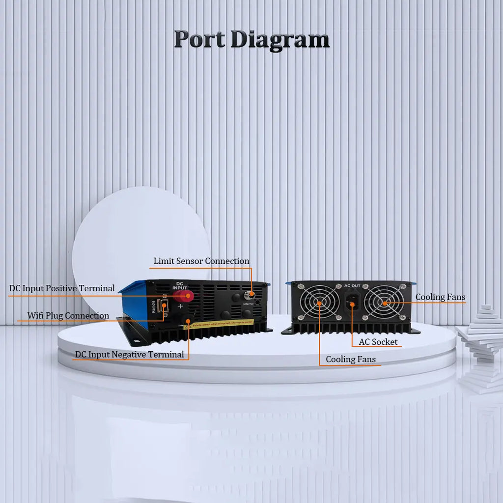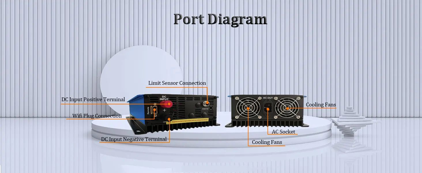 2000W Grid Tie Inverter converts DC power produced by Solar Panels to AC, connects to the grid and feed all of the power available from the panels to the AC load.Smart Micro inverter is synchronized and in-phase with the utility grid.The electric apparatus in the house will use power from the inverter first .If the Solar Panel is producing less power and the GTI cannot deliver all the power needed by the load, then power will be supplemented by the Grid.