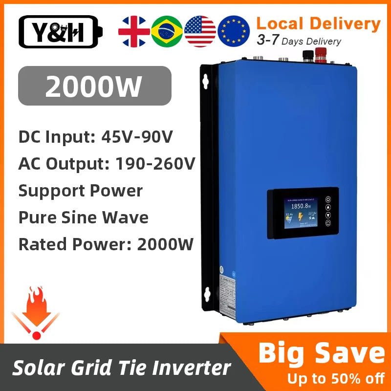 Y&H 2000W MPPT Grid Tie Solar Inverter DC45-90V to AC190-260V With Limiter Sensor 60V 72V Battery Support WiFi Communication