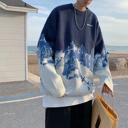 DARK ICON Mountain Sweater Men Women Korean Style Men's Sweaters Winter Couple Clothing