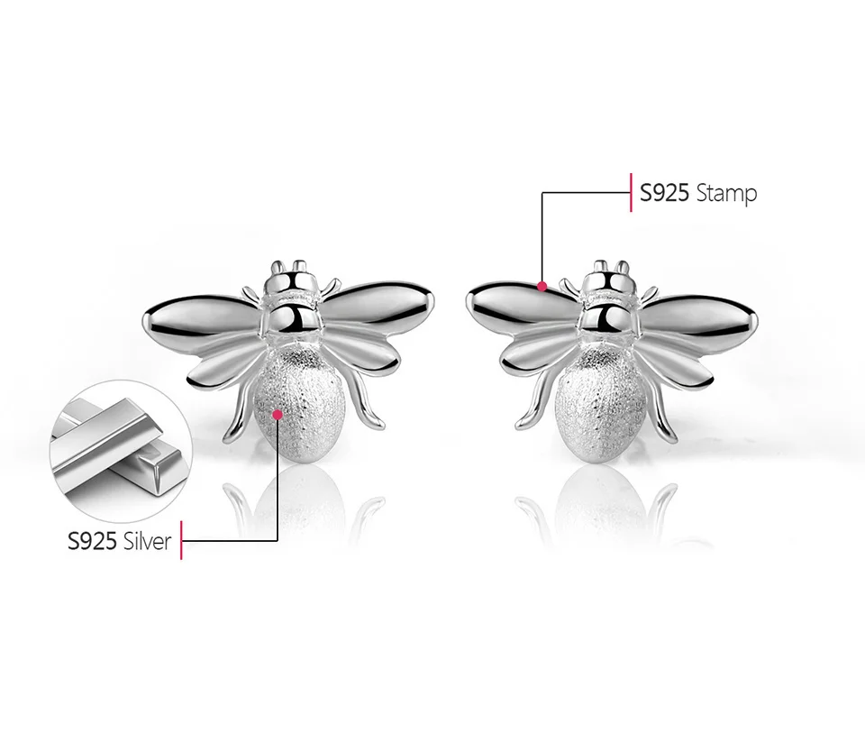 Lotus Fun Real 925 Sterling Silver Bee Earrings Natural Designer Fine Jewelry Cute 18K Gold Honeybee Stud Earrings for Women