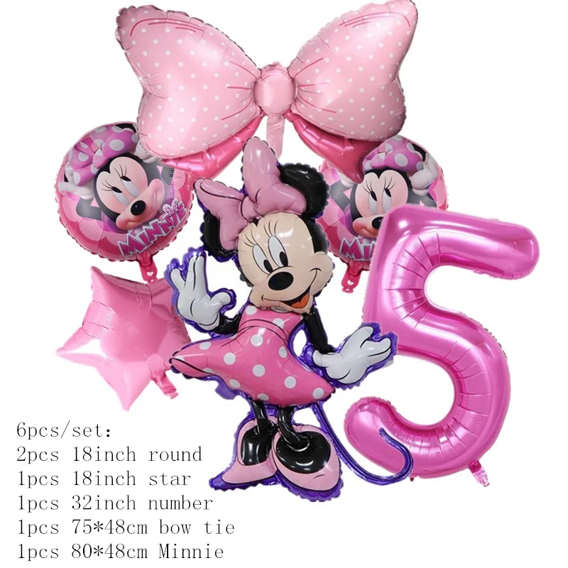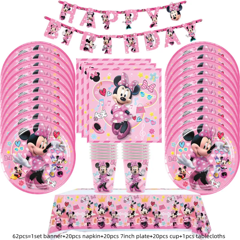 Minnie Mouse Party Disposable Tableware Cup Plate Cake Topper Decoration Minnie 1 2 3st Birthday Balloon Banner Background Decor