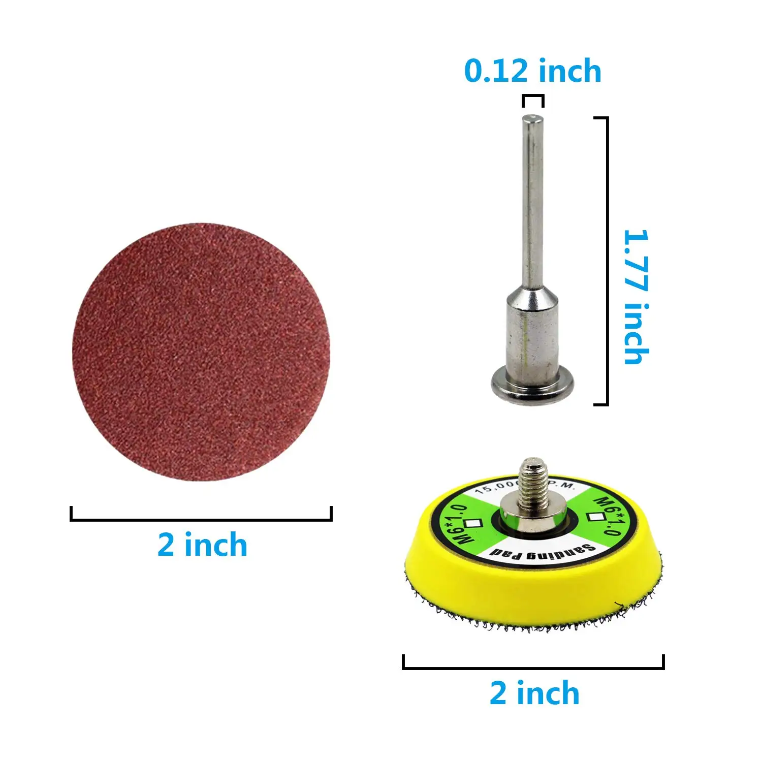 【PACKAGE INCLUDE】1pcs 2 inch sanding pad with shank and 100pcs 2 inch sandpaper{60grit; 100Grit; 120Grit; 150Grit; 180Grit; 240Grit; 320Grit; 800Grit; 1200Grit; 2000Grit (10 each)}. 【HIGH QUALITY】Made from aluminium oxide abrasive, durable and anti-static, perfect for corner cleaning and polishing, such as polished metal, wood, jade and so on 【MANY USE】Perfect for cleaning and polishing, they can be used with polishing agent to c make the rough surface smooth and shiny. 【BUY WITH CONFIDENCE】Thank you so much for your great support on us. Product quality and customer satisfaction is our top priority. If you have any questions please contact us, we will provide the best service as we can.