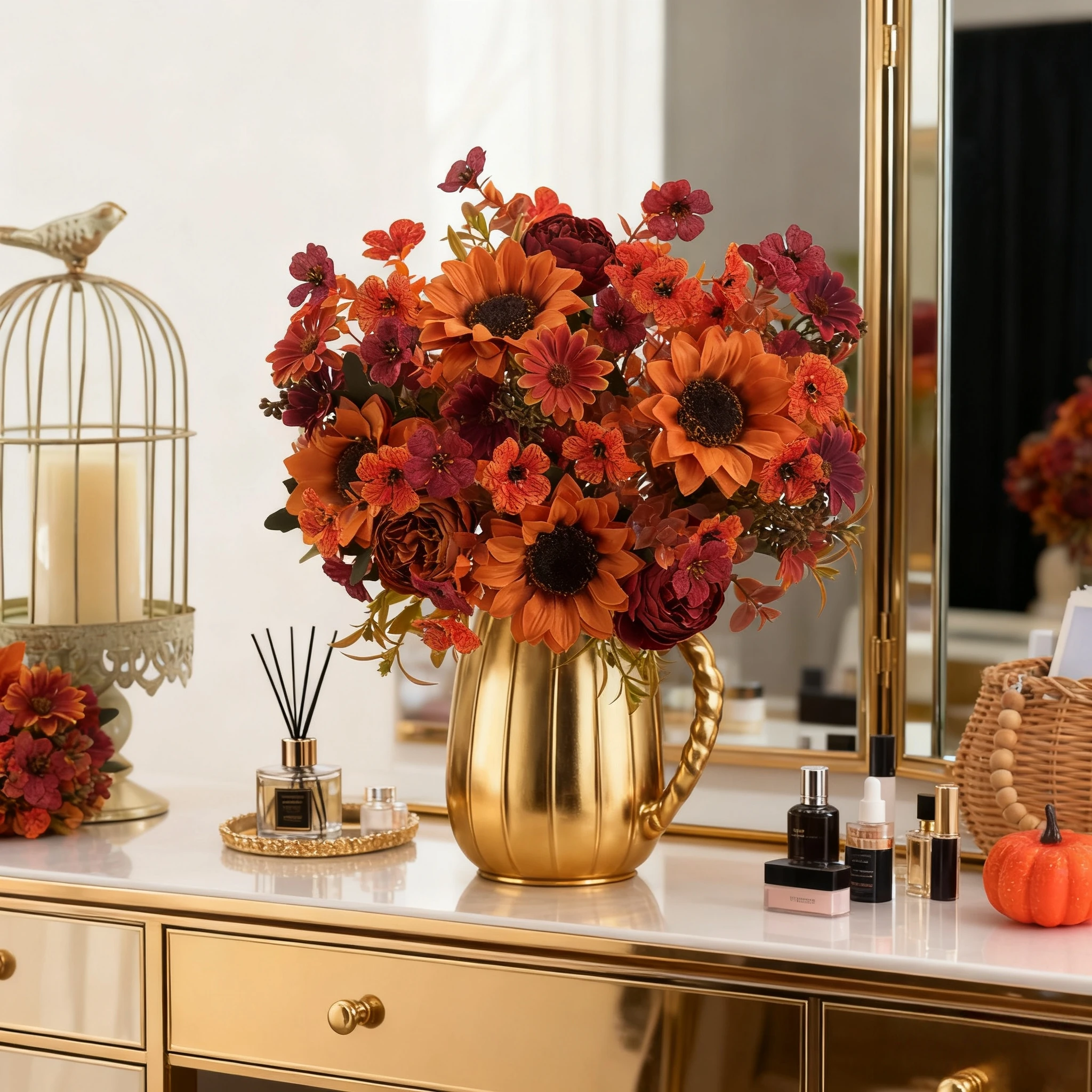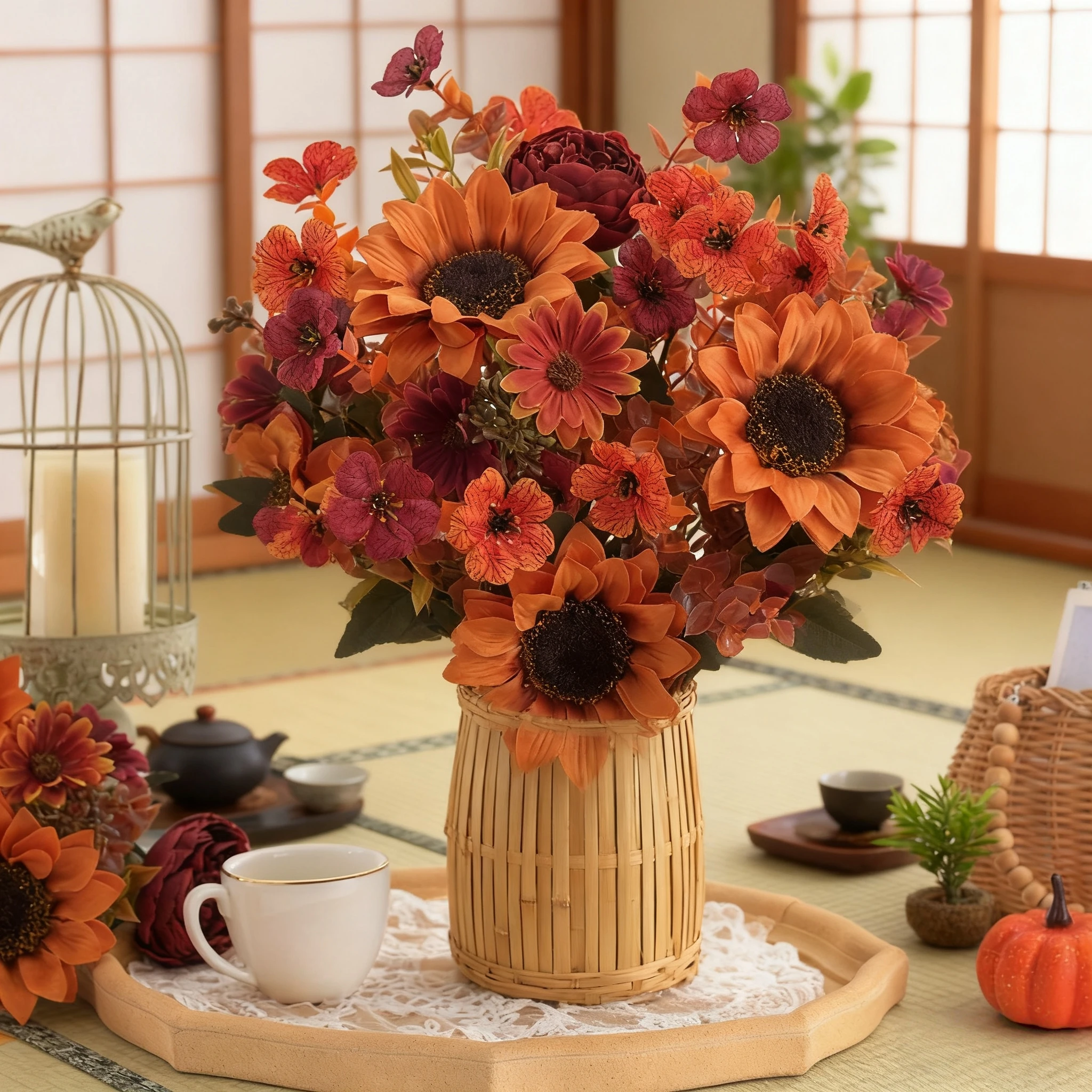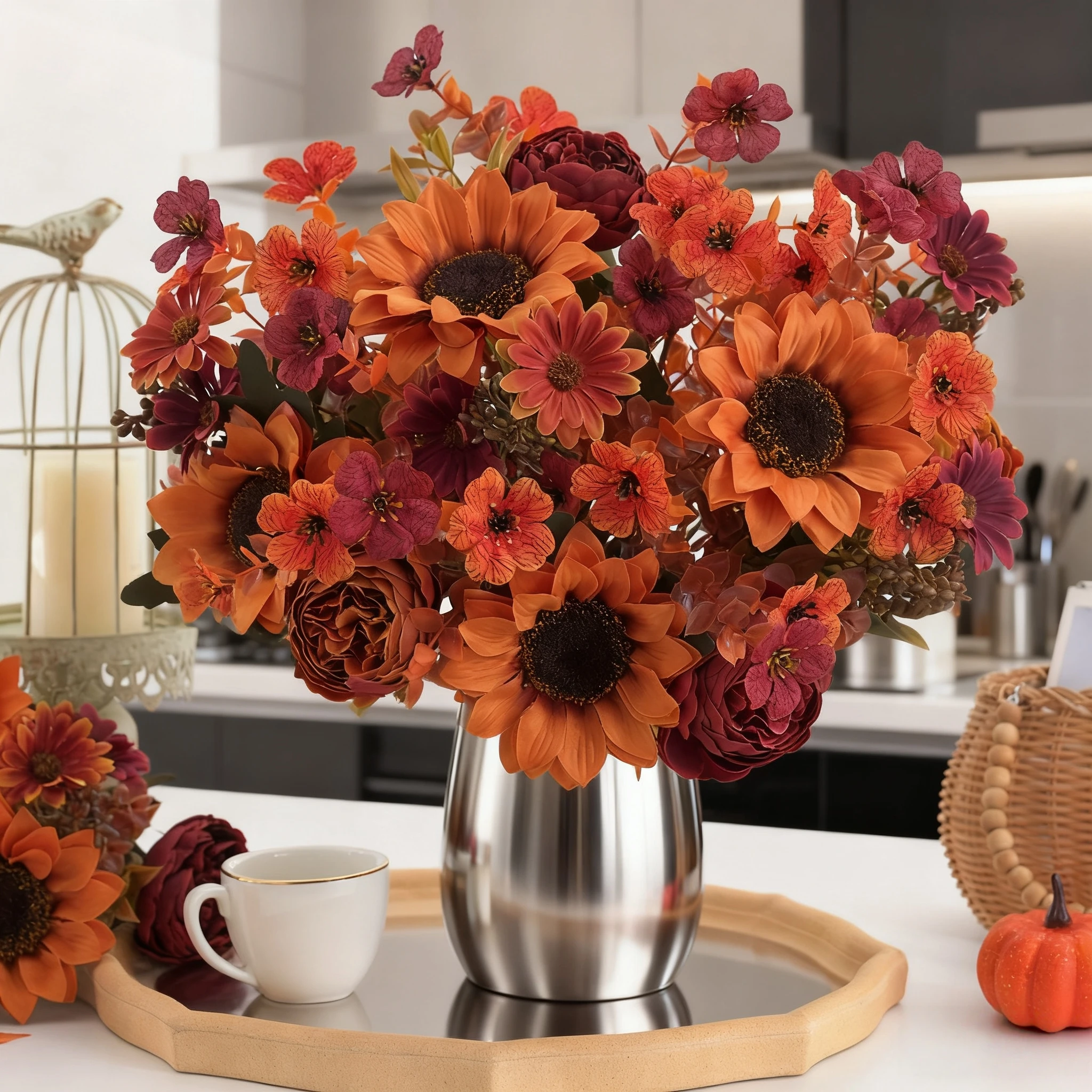 4PCS Mixed Artificial Flowers Bouquet: Sunflower & Peony for Home, Wedding, Party Decor, Valentine's New Year Decoration