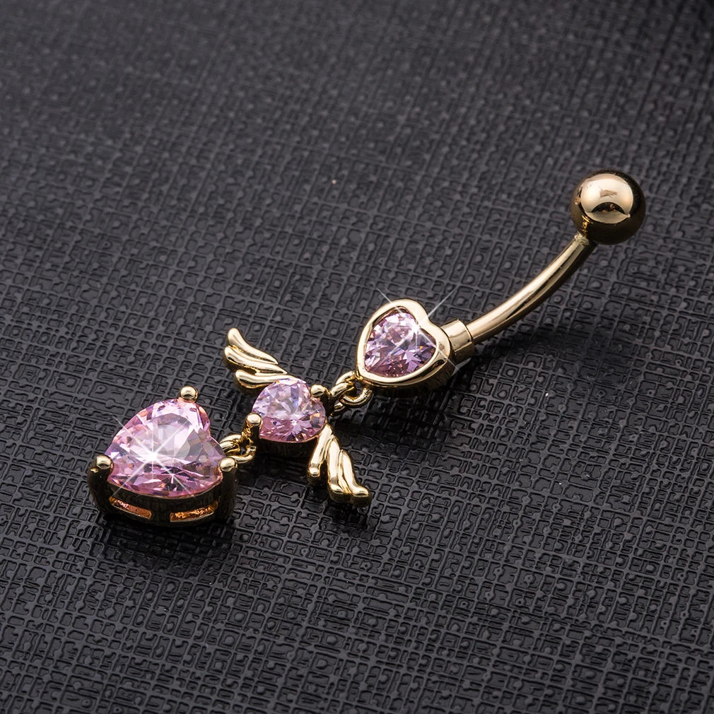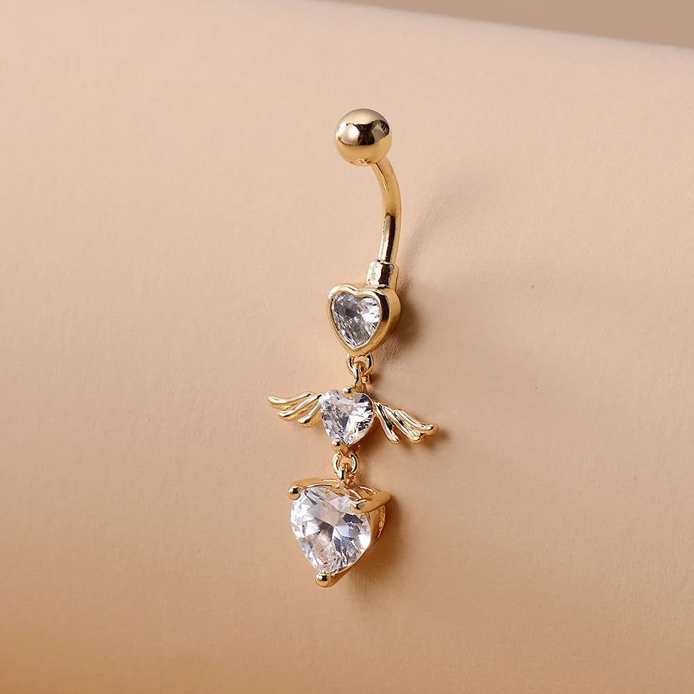 KUNIU 1pc Cute Fashion Angel Wings Heart Shape Zircon Belly Ring Women's Fit Piercing Body Jewelry