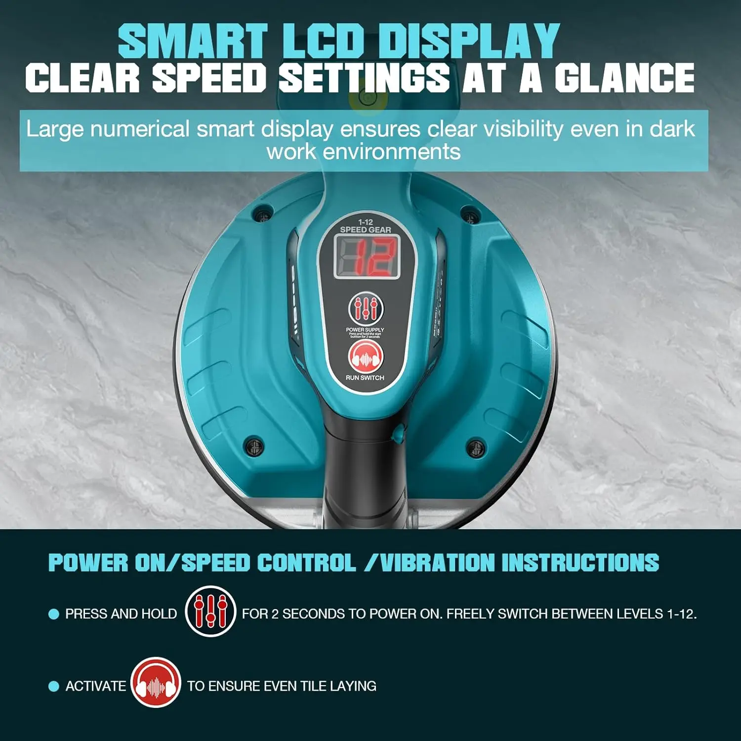 Adjustable Vibration Levels with LED Display: Features multiple adjustable vibration levels, this tile vibration machine tool, allowing you to customize the intensity for different tile laying needs. The integrated LED display allows for easy monitoring of vibration settings, keeping you informed and in control throughout your project