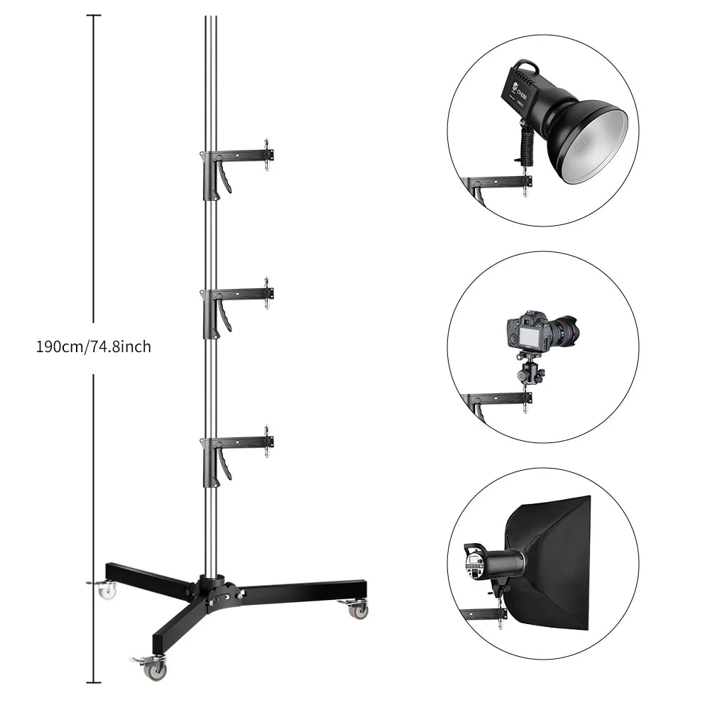 SH 63cm-190cm Gun Grip Light Stand 1/4 and 3/8 Screw With Wheels Folding Tripod For Studio Flash LED Light Softbox COB Light