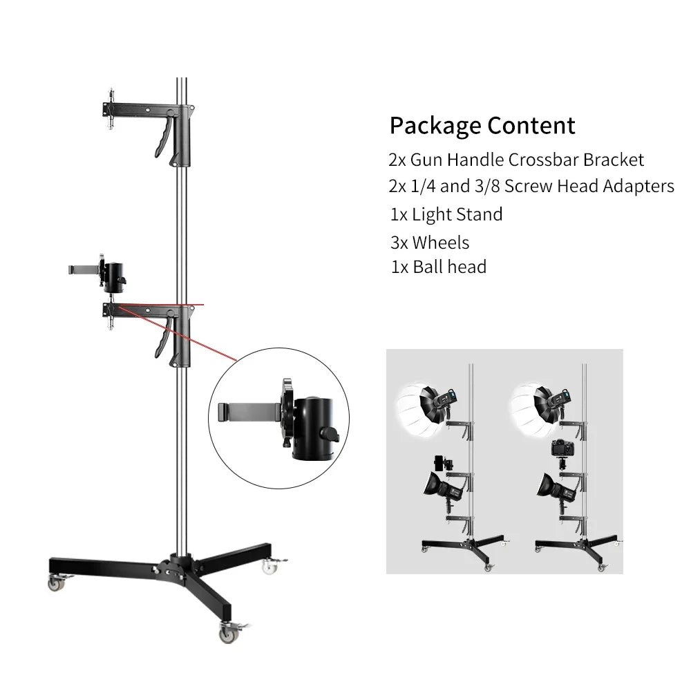 SH 63cm-190cm Gun Grip Light Stand 1/4 and 3/8 Screw With Wheels Folding Tripod For Studio Flash LED Light Softbox COB Light