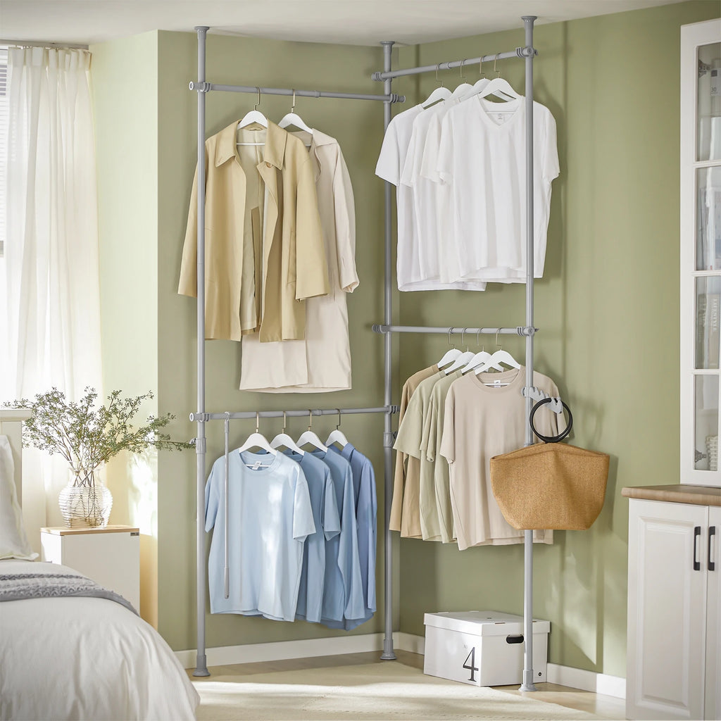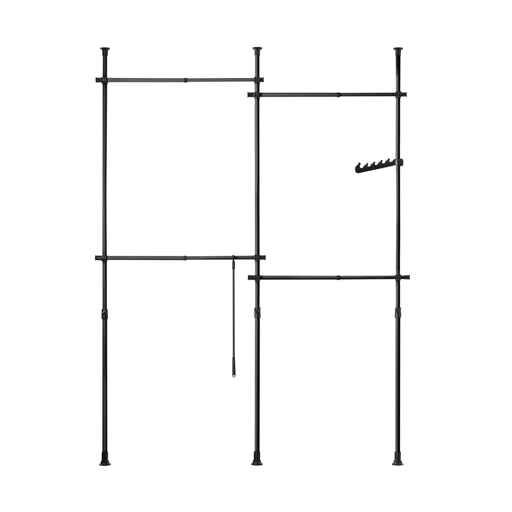 Thanks to the 4 continuously adjustable dresses rods, this system offers plenty of space for dresses, coats, tops, pants or shirts.