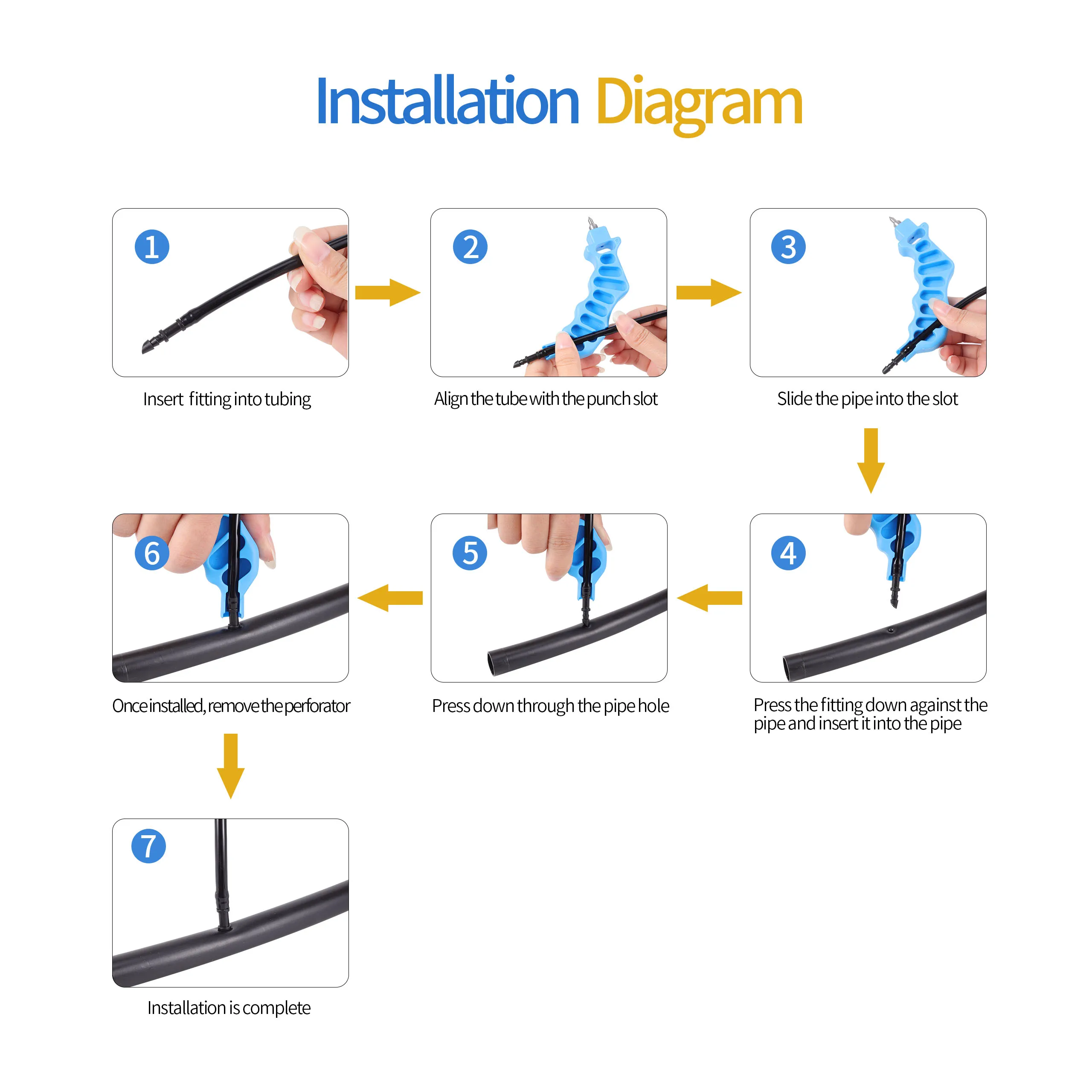 4-In-1 punching and fitting insert: It is suitable for both drip tubing punch and 1/4" fitting insertion use.