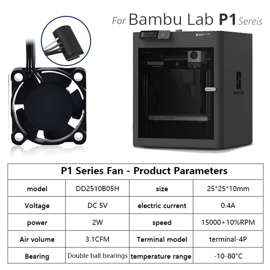 P1 Fan works for Bambu Lab P1P/P1S 3D printer.