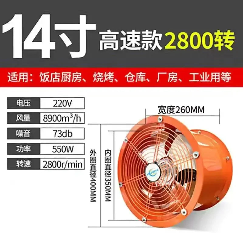 10/12/14/16inch Round speed kitchen exhaust fan Strong cylinder duct fan Silent axial flow industrial exhaust fan High power