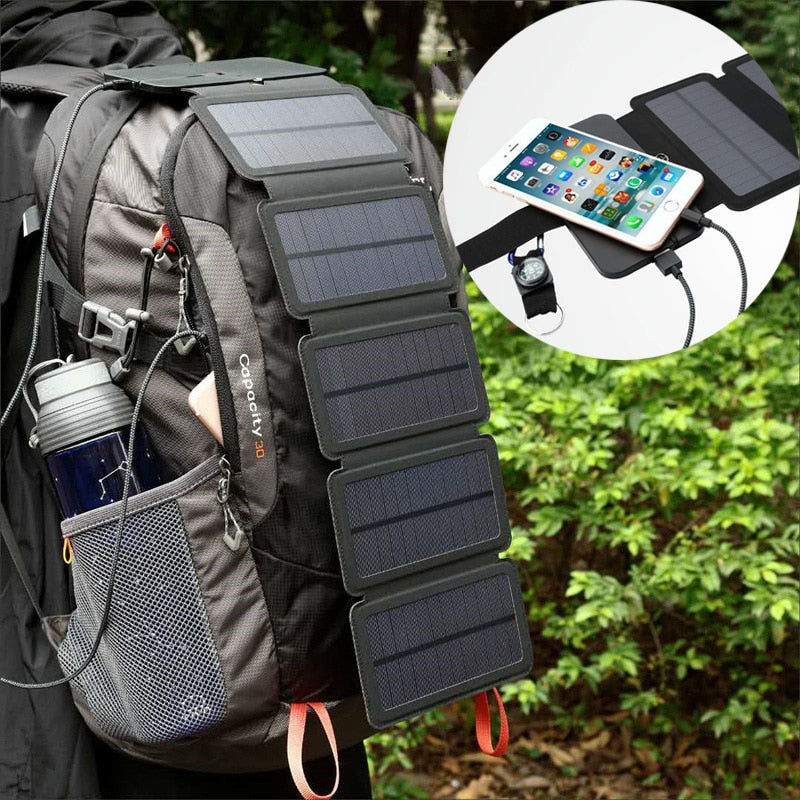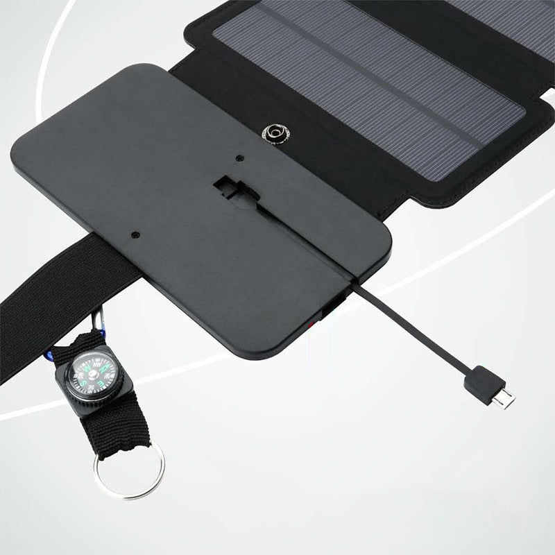 charger: solar panel 4 folding is 8W, 5 folding 10W.