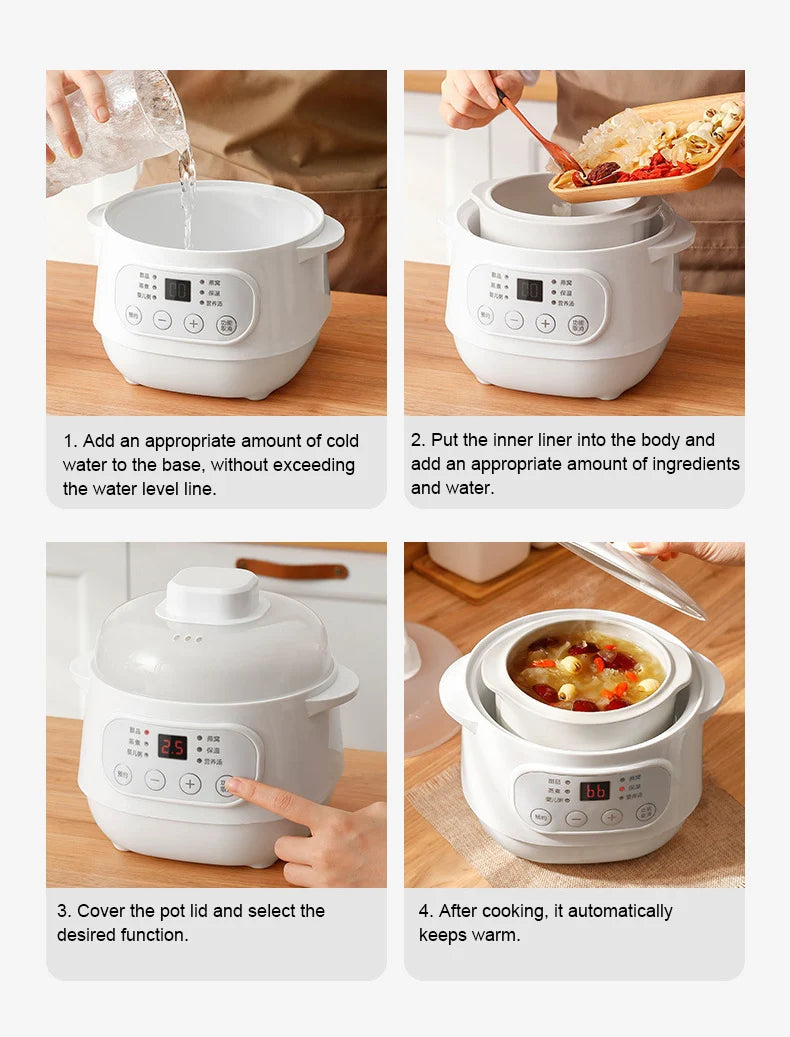 110V Electric Slow Cooker Food Steamer Ceramic Pot Multifunction BirdNest Soup Stew Pregnant Tonic Baby Supplement Heater Warmer