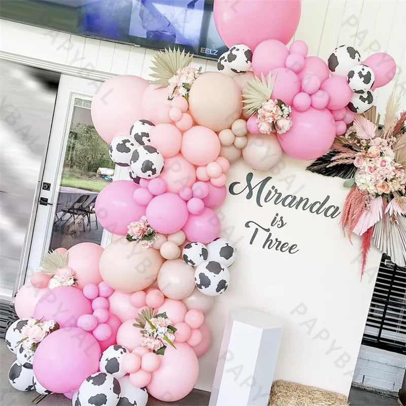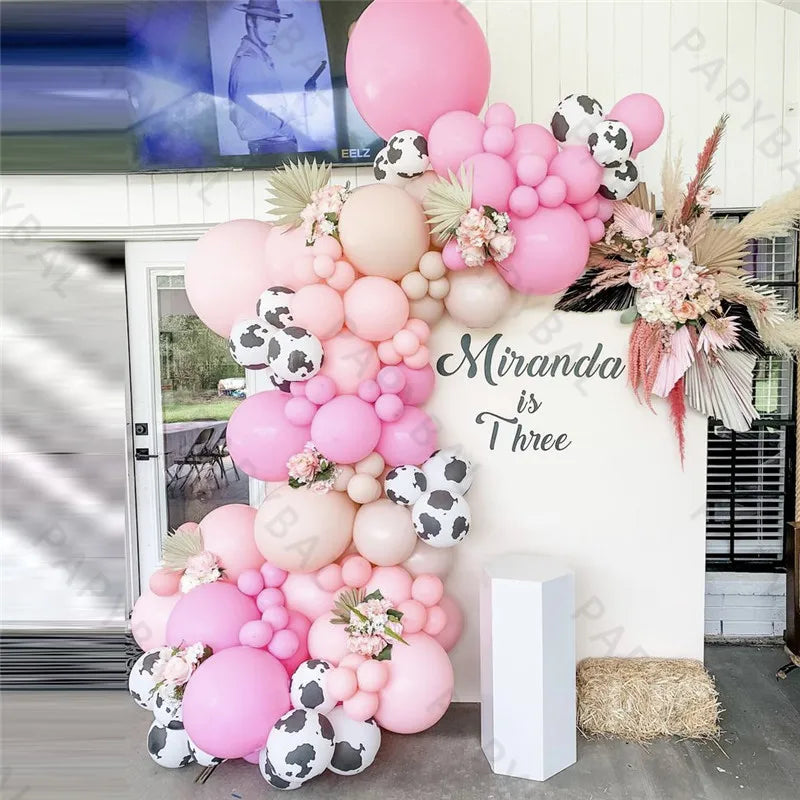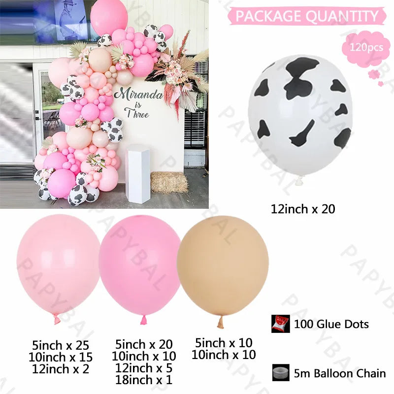 120Pcs Cow Farmland Theme Party Pink Balloon Garland Arch Kit 12inch Cow Printed Balloons for Farm Birthday Party Decor Supplies