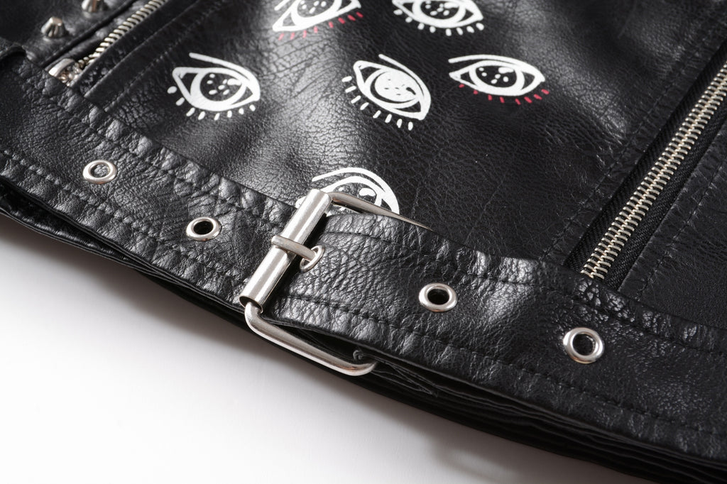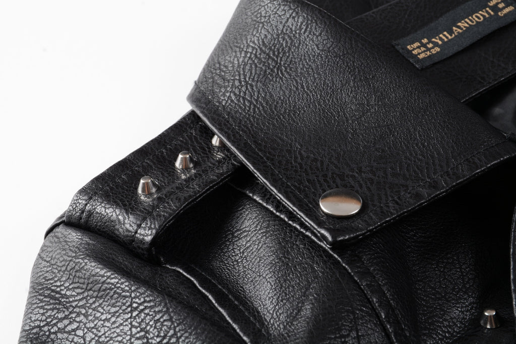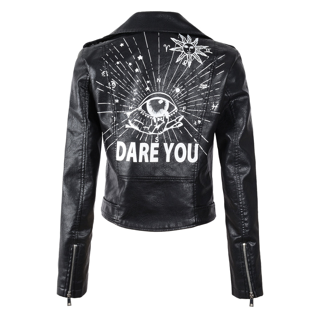 2021 Women Autumn Winter Faux Soft Leather Jackets Coats Lady White Black PU Rivet Zipper Epaulet 3D Print Motorcycle Streetwear