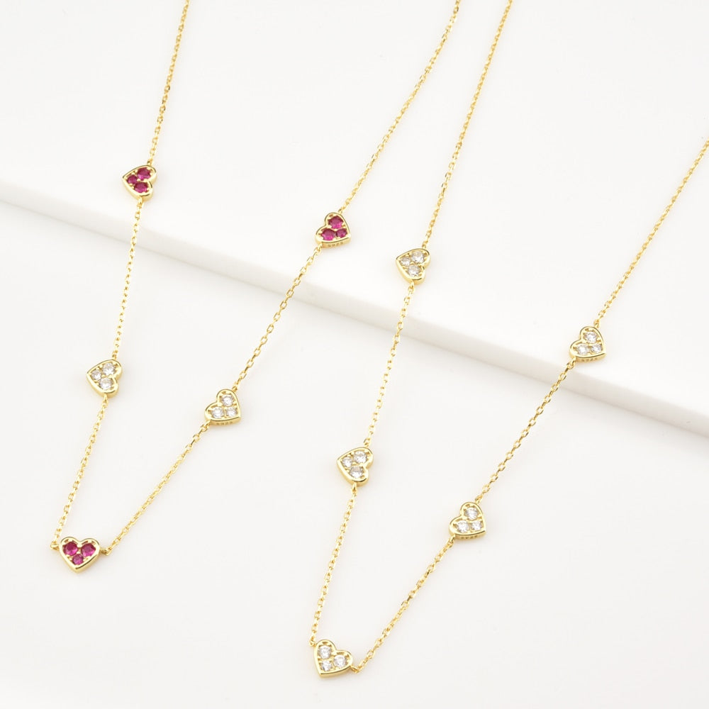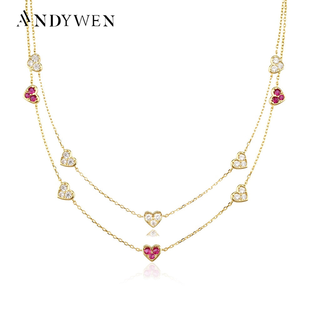 ANDYWEN 925 Sterling Silver Gold Love Heart Clear Rose Red Charm Long Chain Choker Necklace Pendant Women Wedding Luxury Jewelry