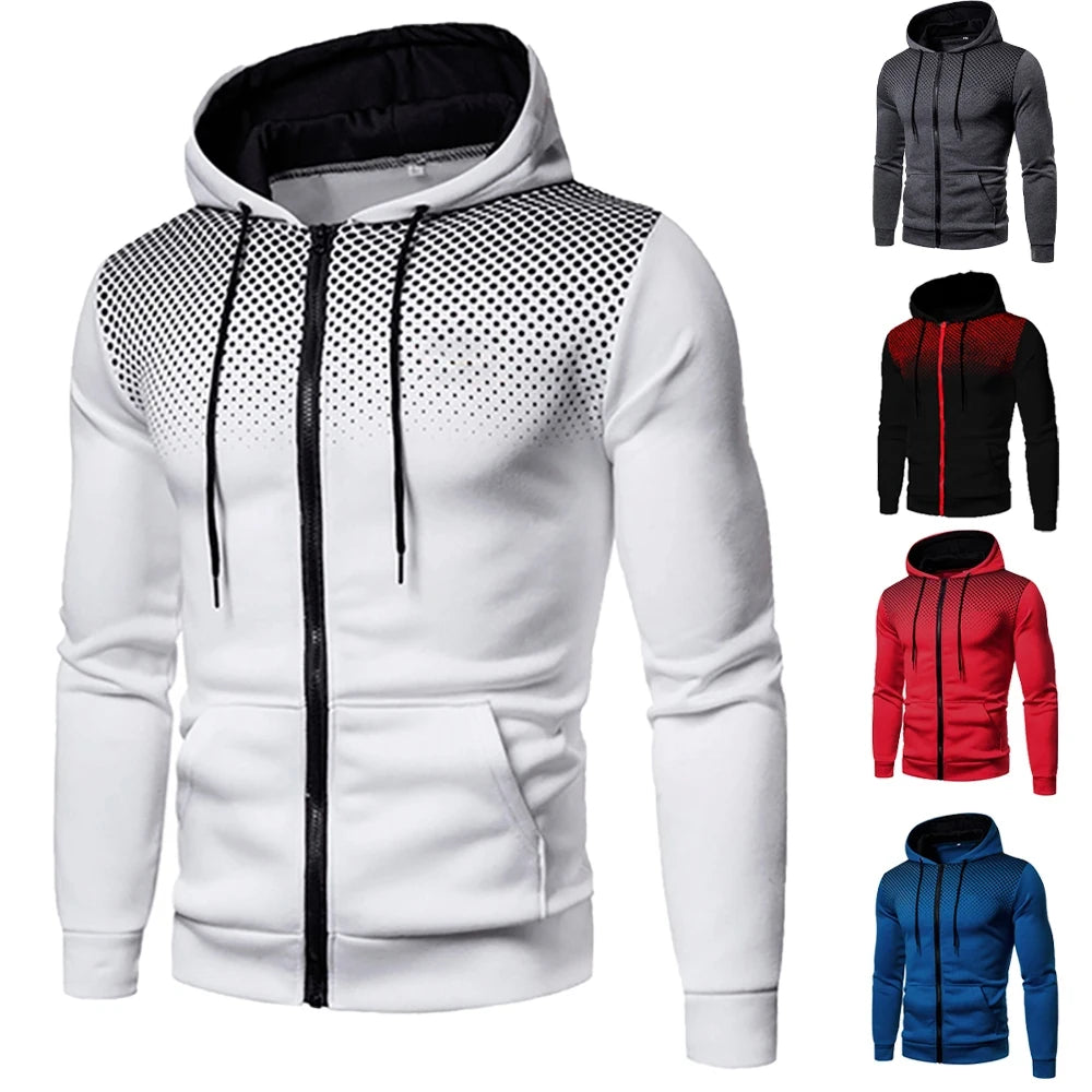 Autumn Winter Fleece Men's Hoodies Polka Dot Design Zipper Jacket Male Streetwear Loose Sweatshirts Sportwear Hooded Cardigan