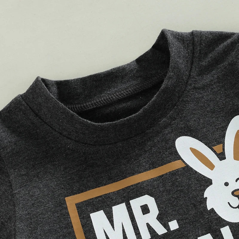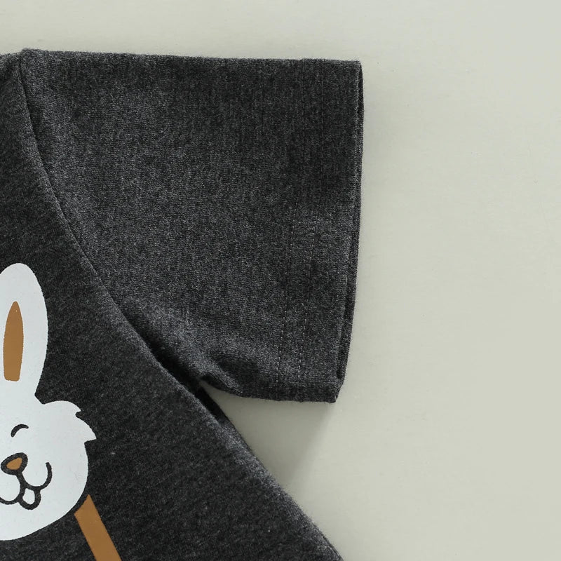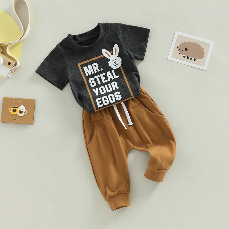 Easter Baby Boys Pants Set, Short Sleeve Crew Neck Letters Rabbit Print T-shirt + Elastic Waist SweatpantsThis pants set is a very good gift for your baby boy on Easter. He will like it very much! Easy outfit!